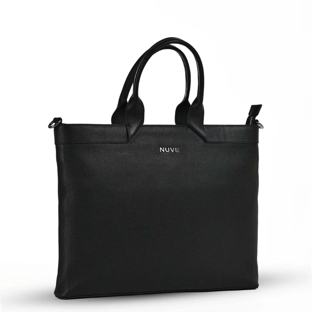 NUVE Genuine Leather Bag for Men - Corporate Structured Laptop Carrier - Black