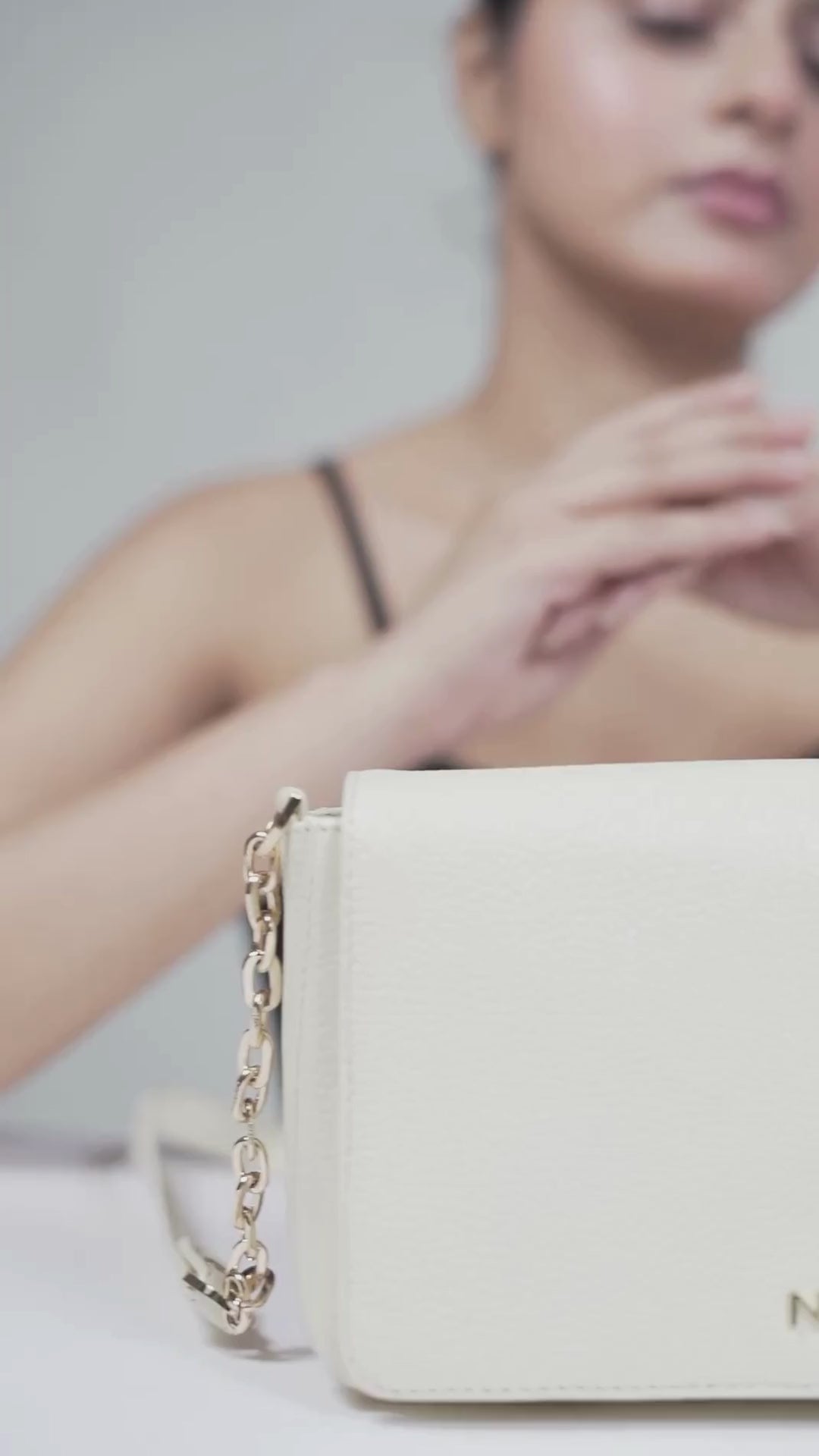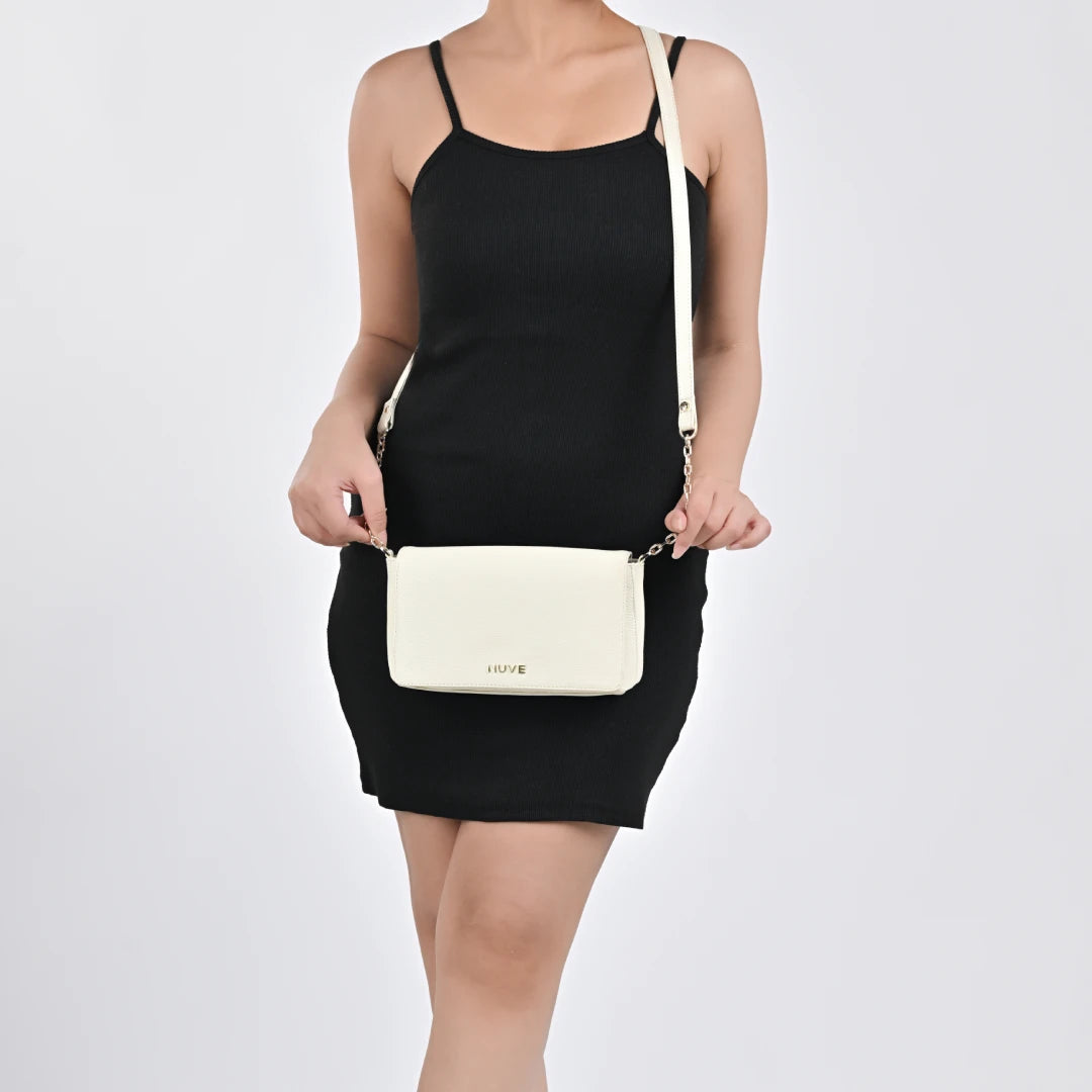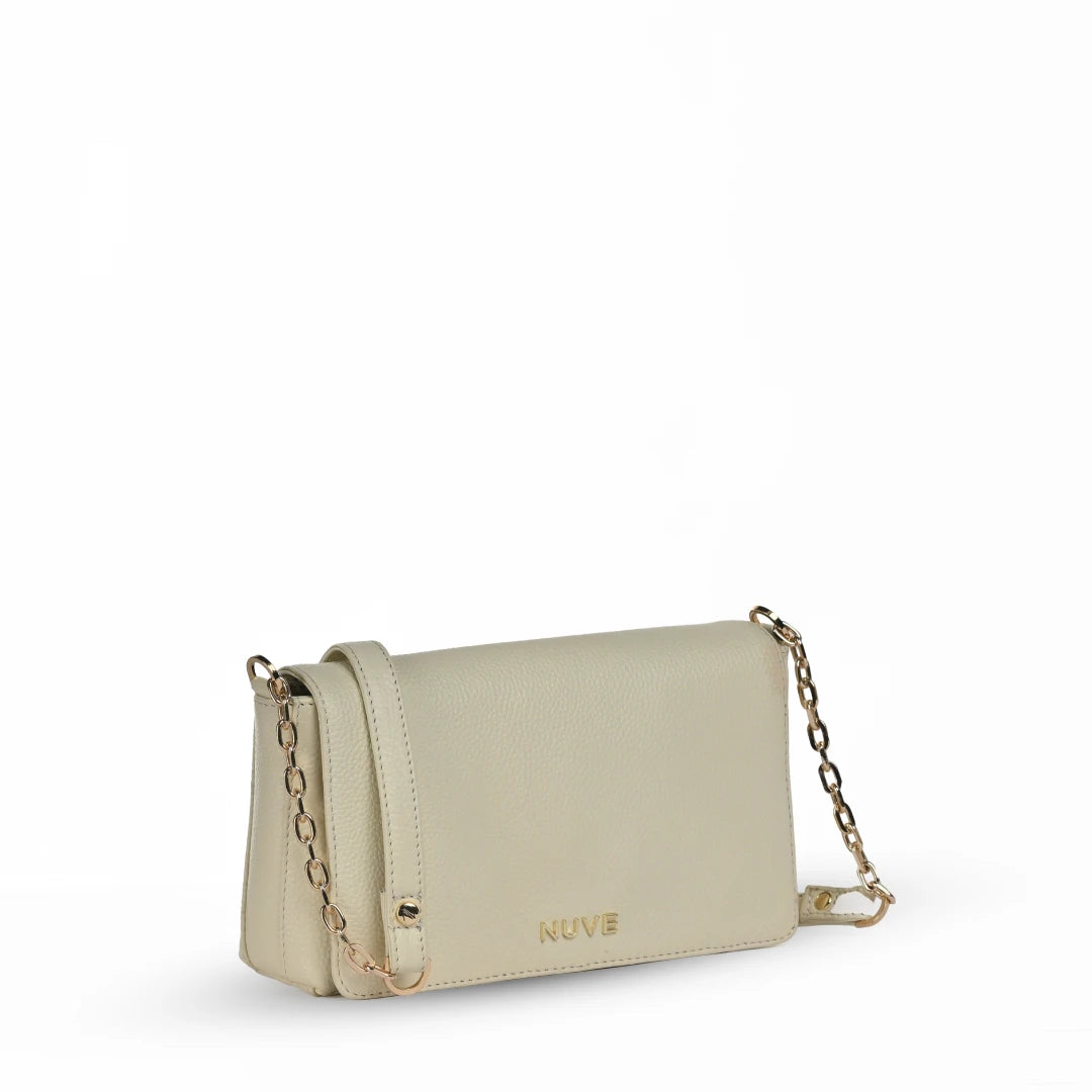 NUVE Genuine Leather Crossbody Bag for Female - Crisp Textured - Stone