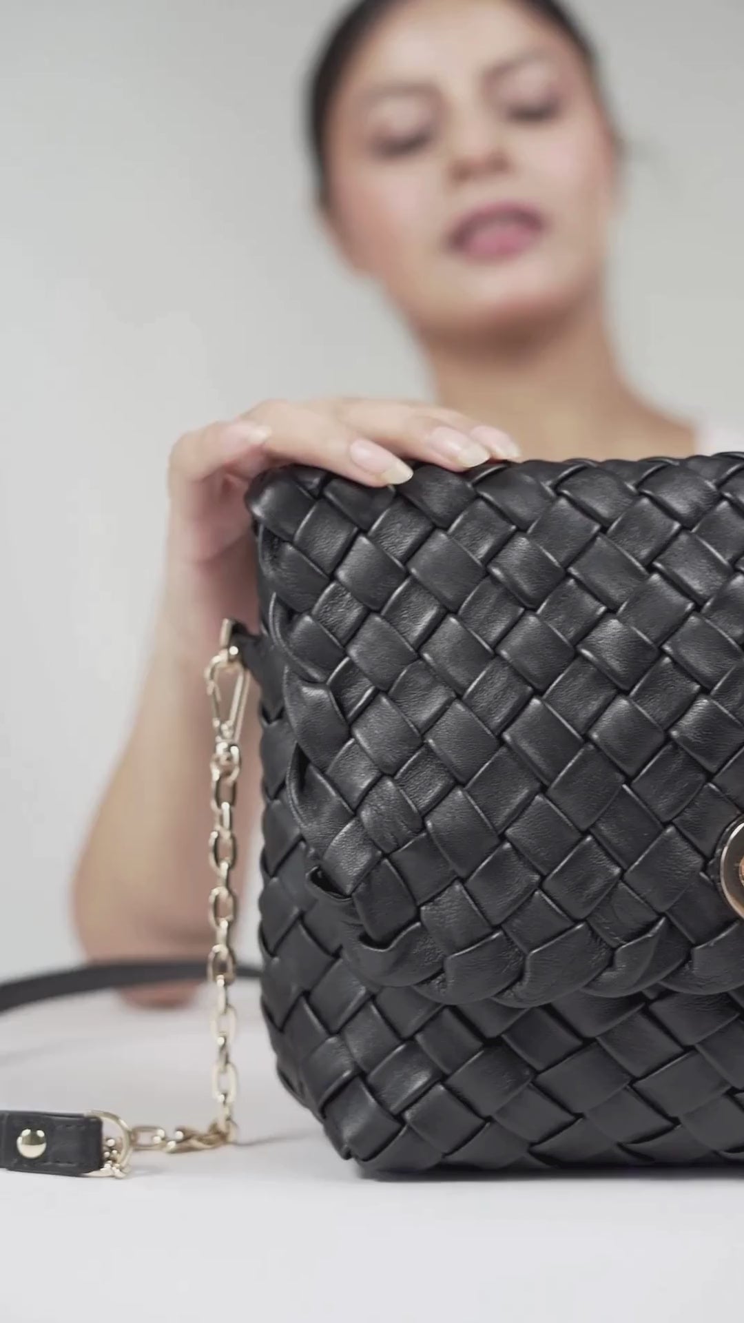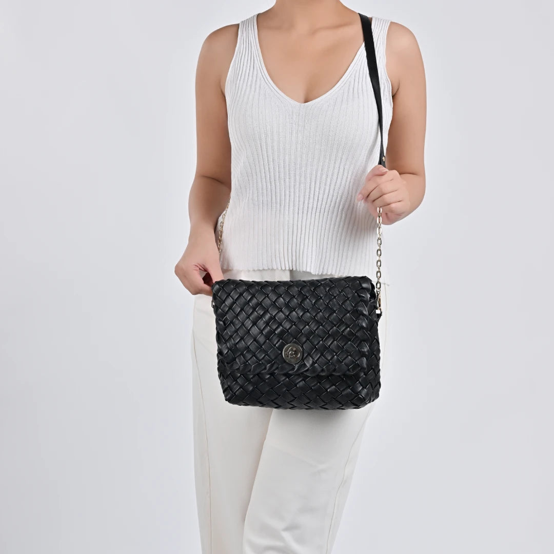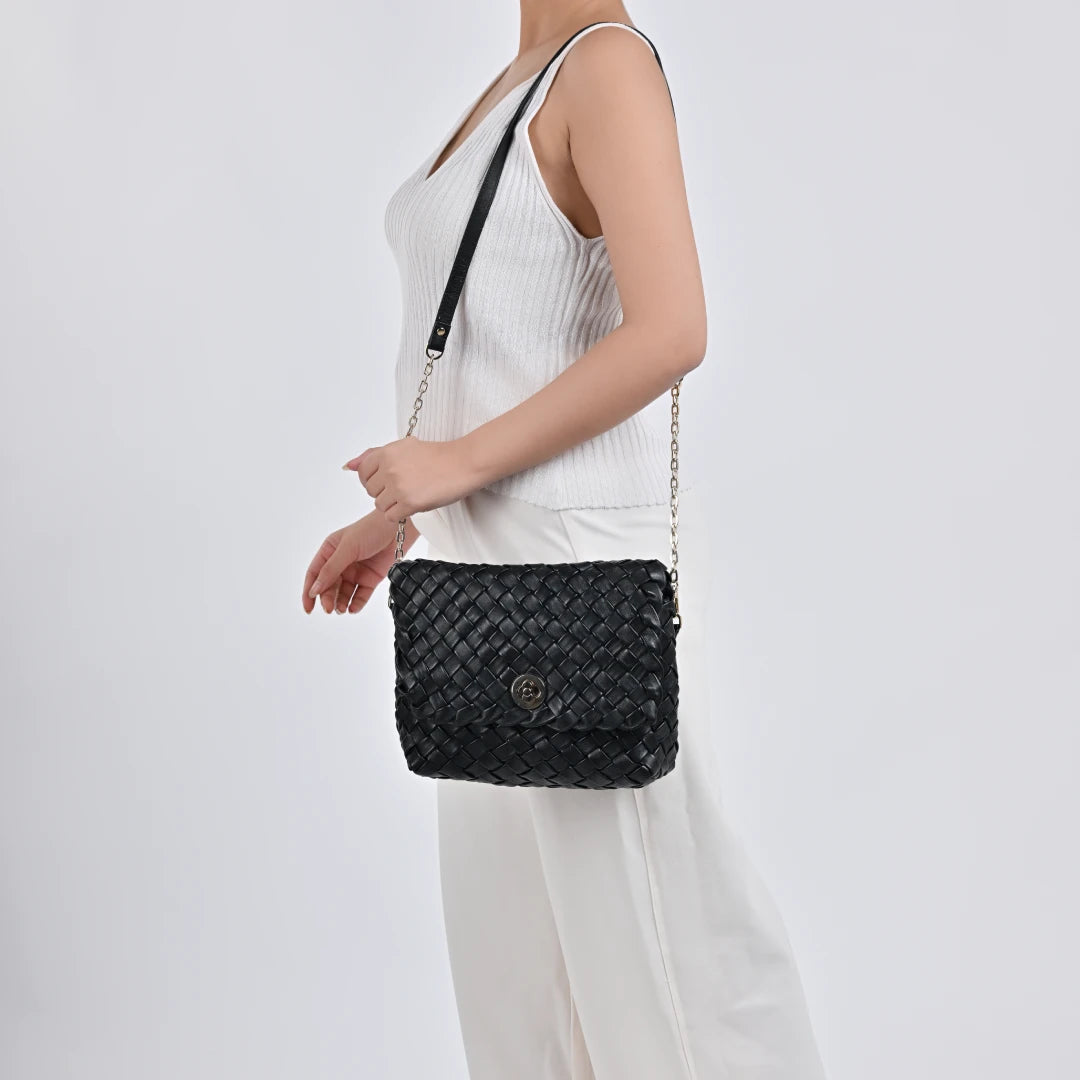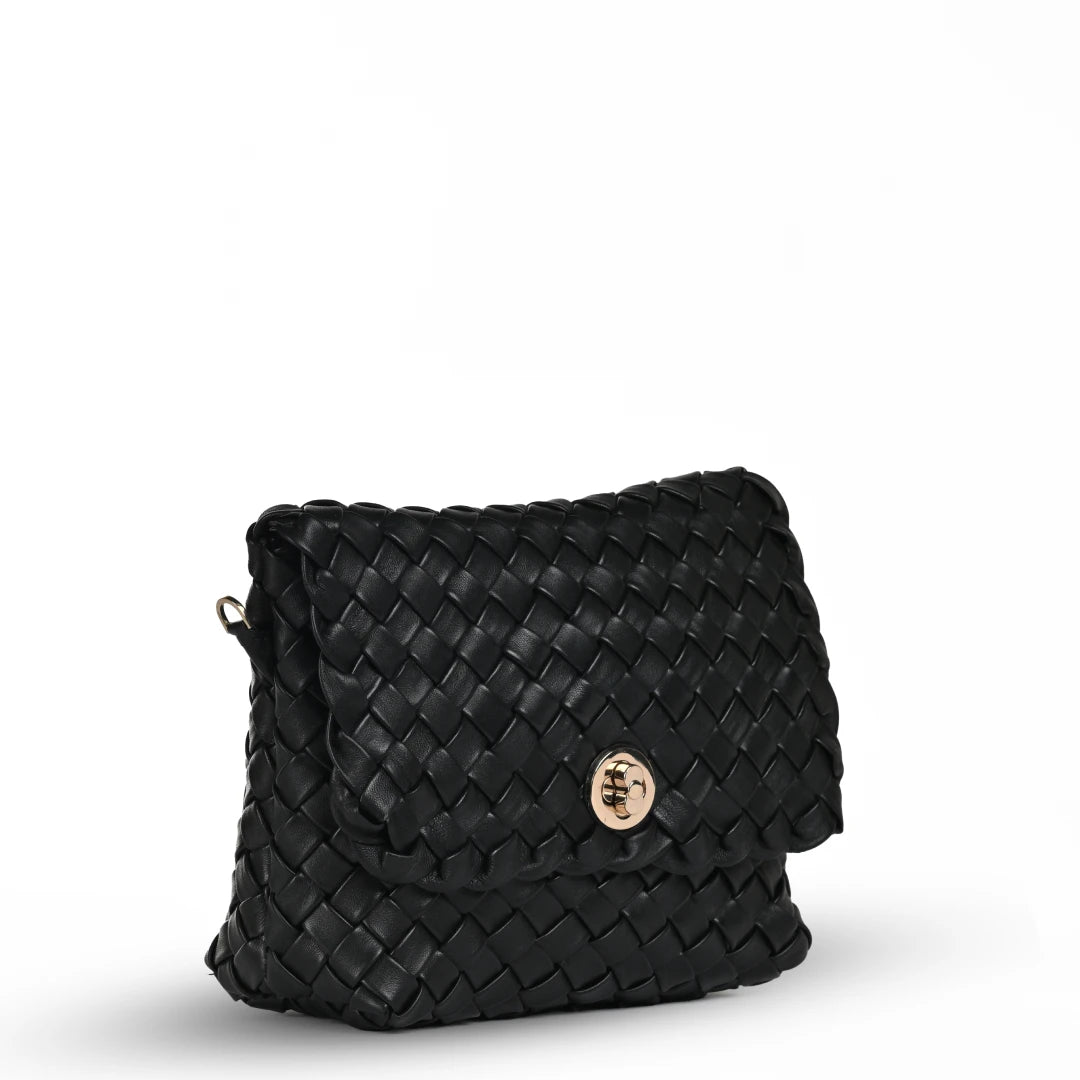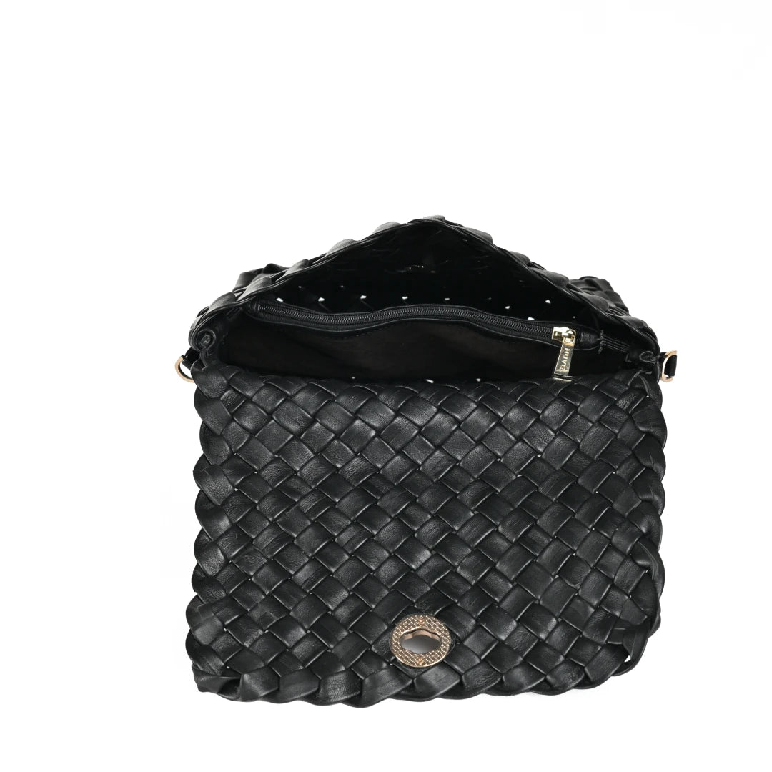 NUVE Genuine Leather Crossbody Bag for Female - Criss Cross Structured -Black