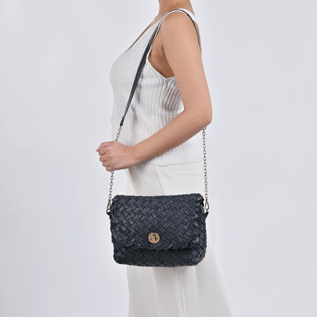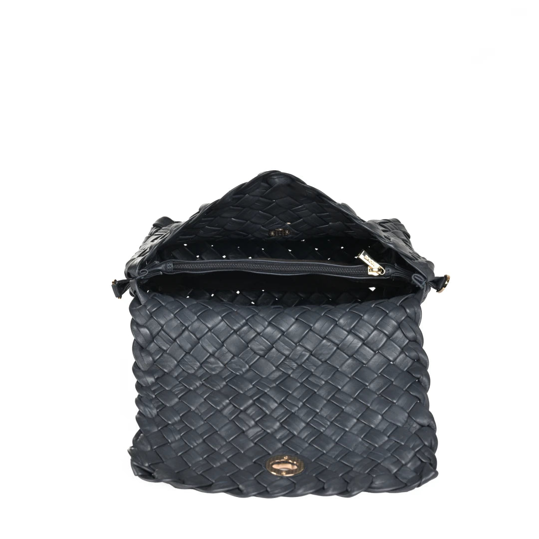 NUVE Genuine Leather Crossbody Bag for Female - Criss Cross Structured -Navy
