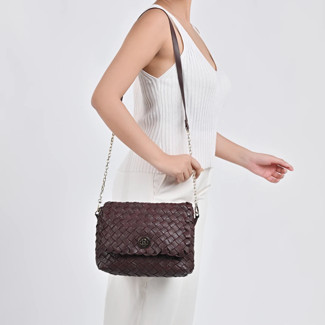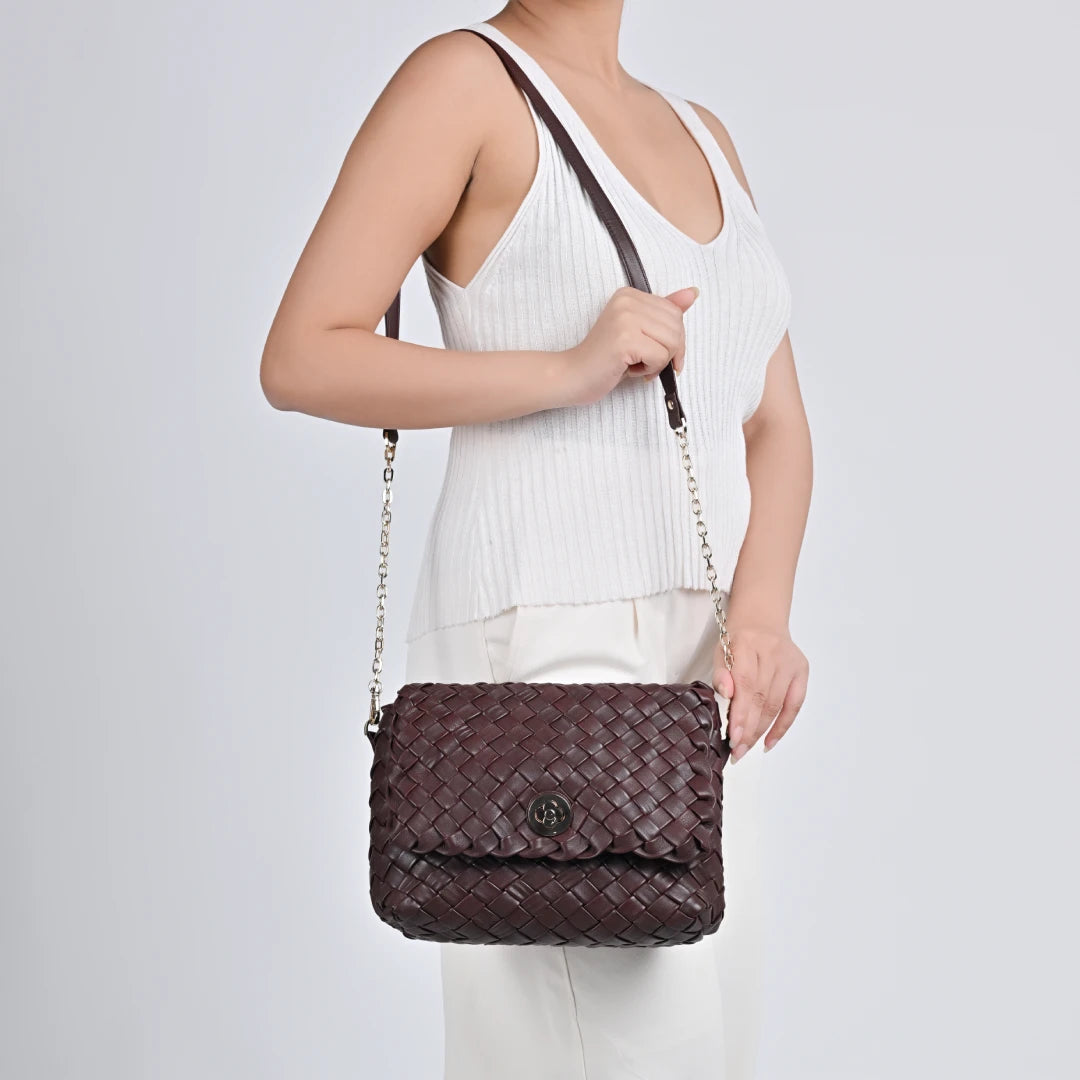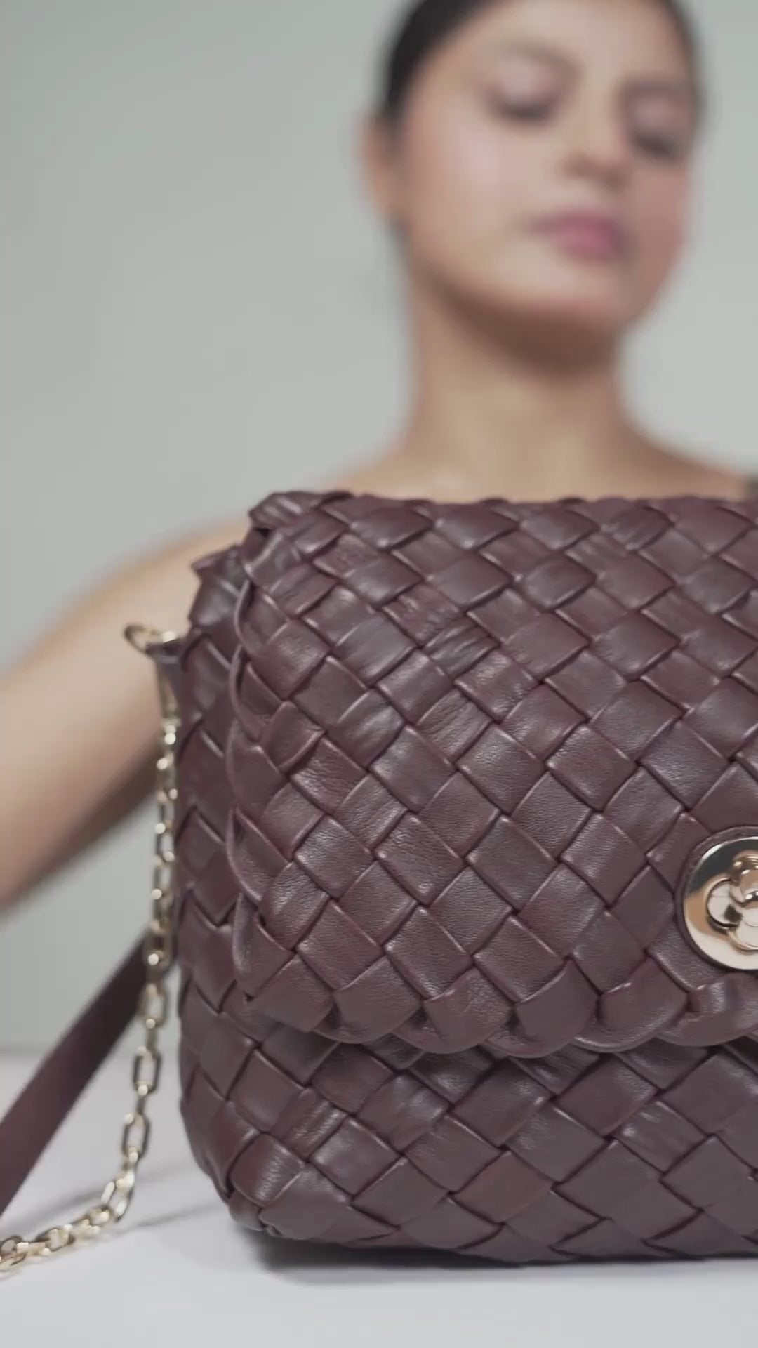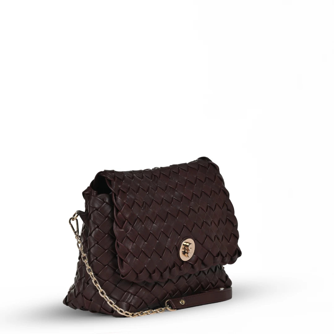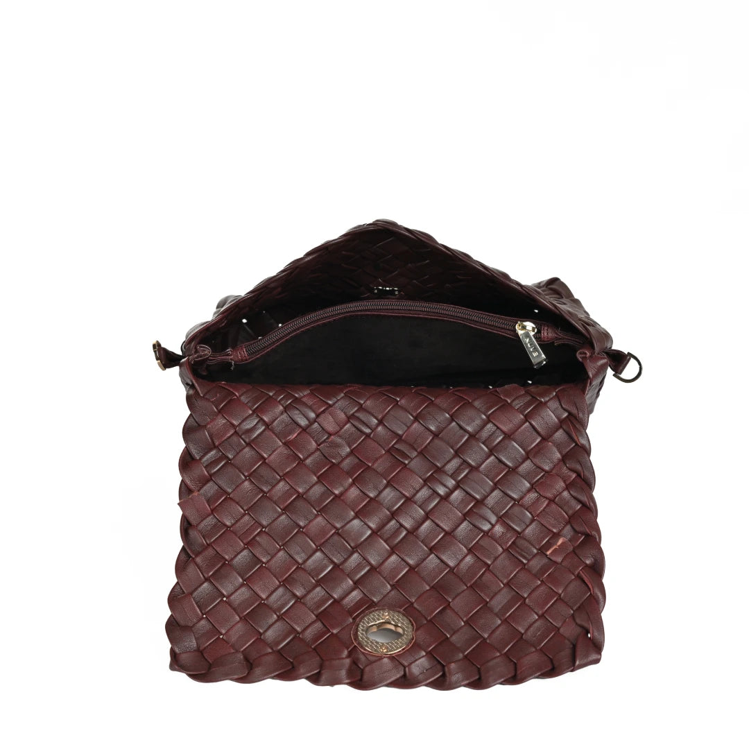 NUVE Genuine Leather Crossbody Bag for Female - Criss Cross Structured - Wine