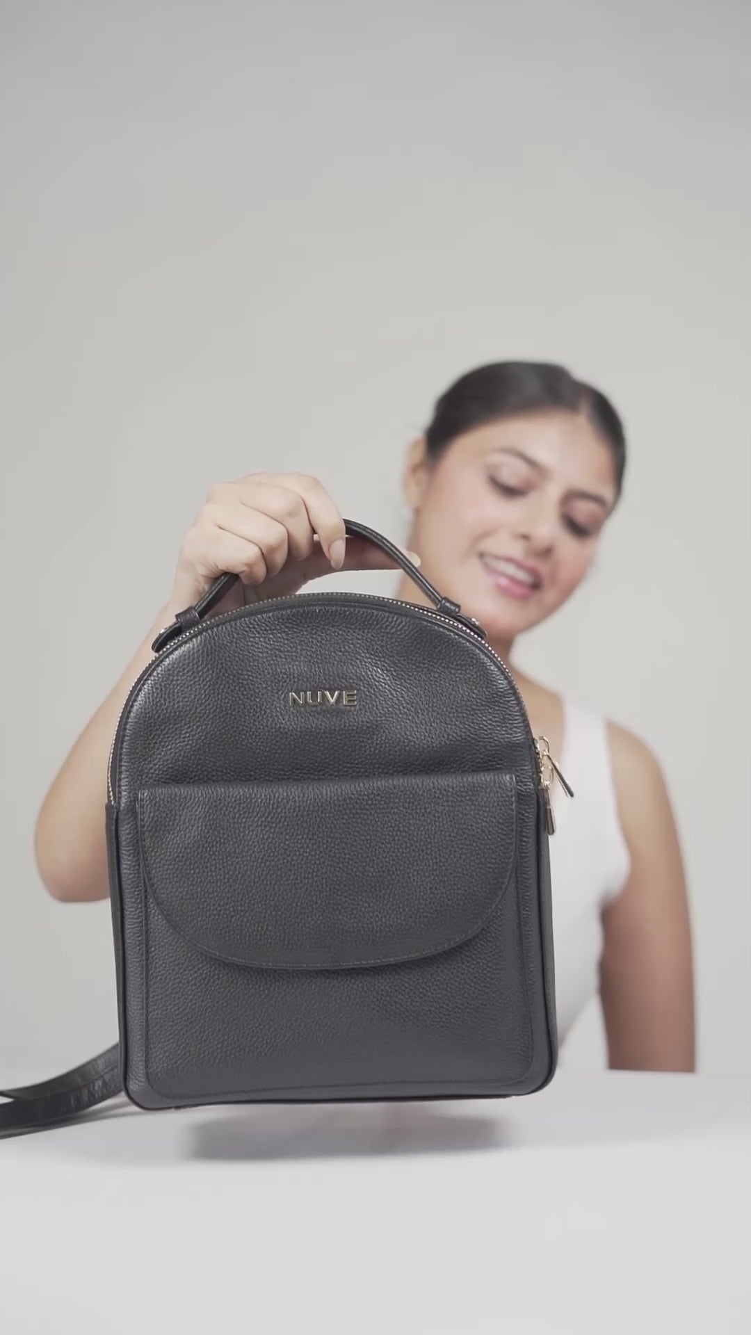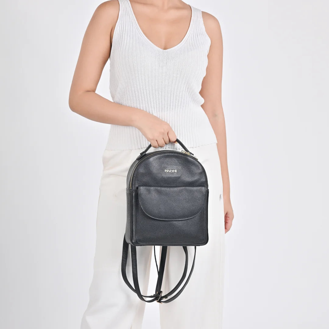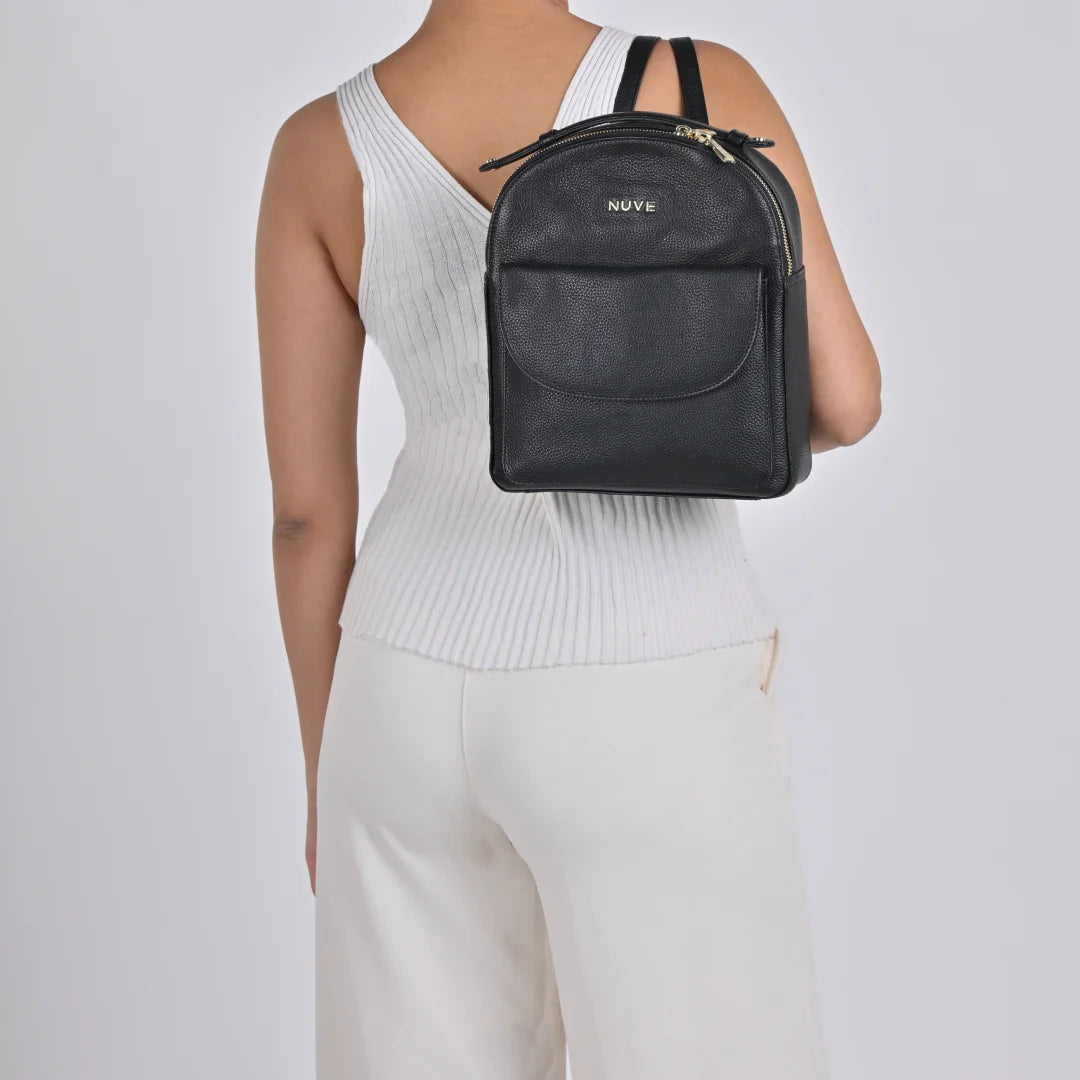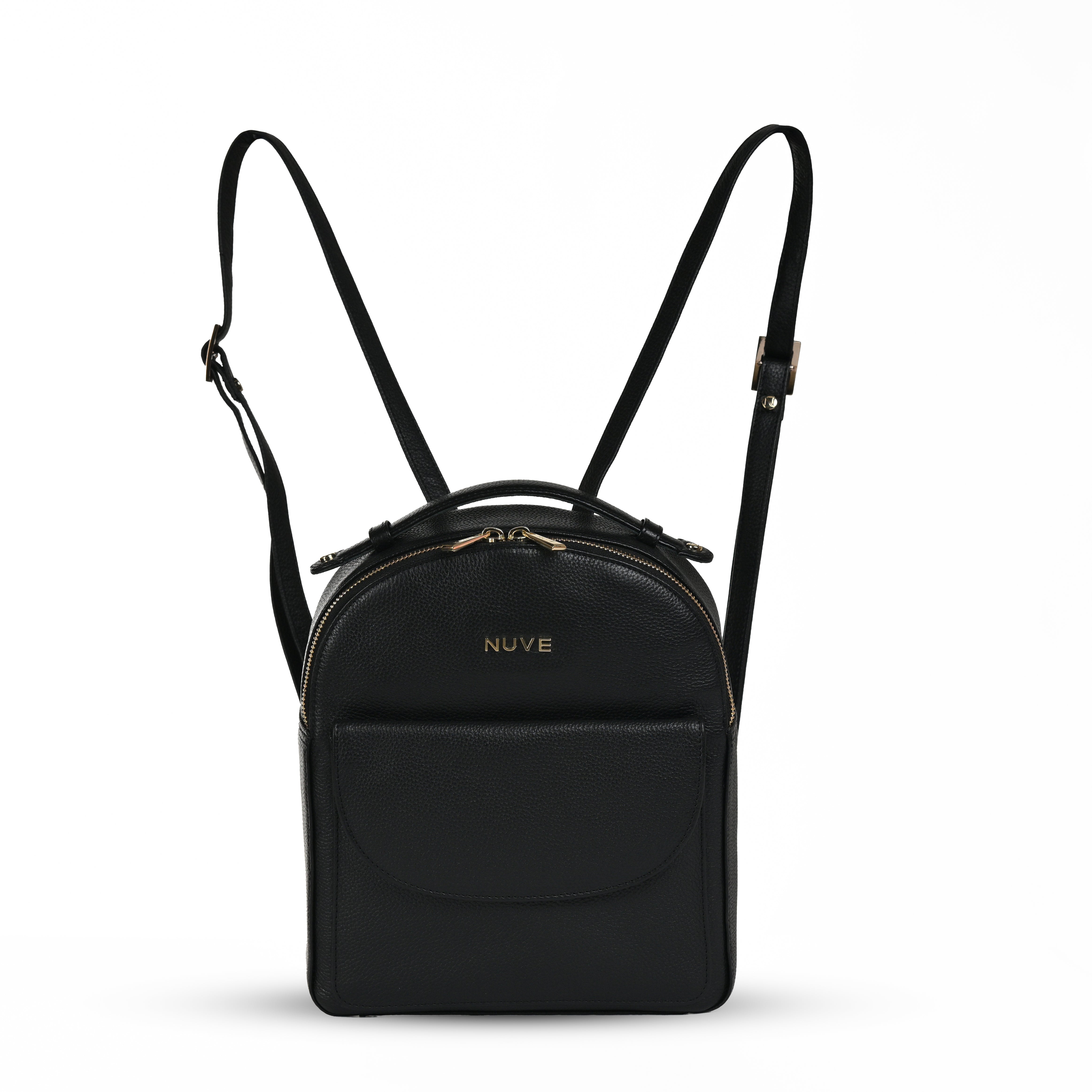 NUVE Genuine Leather Backpack for Female - Compact Ergonomic Structured - Black