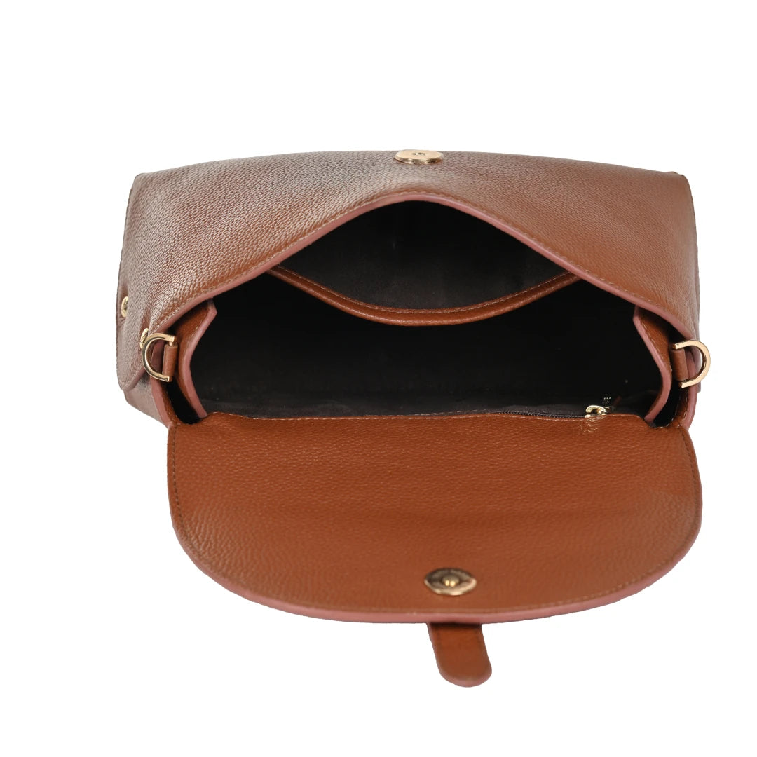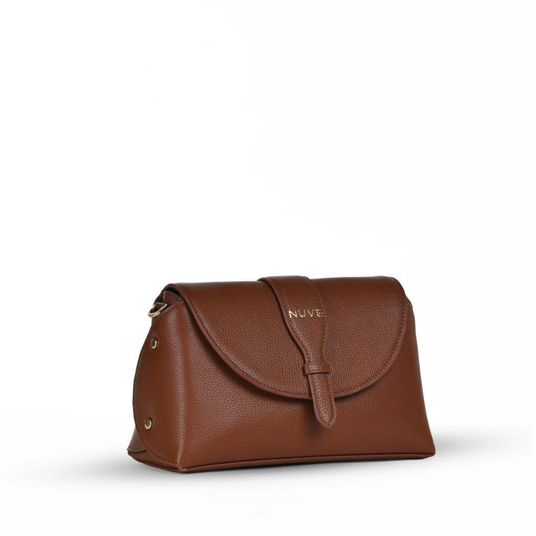 NUVE Genuine Leather Crossbody Bag for Female - Structured Polished - Chestnut