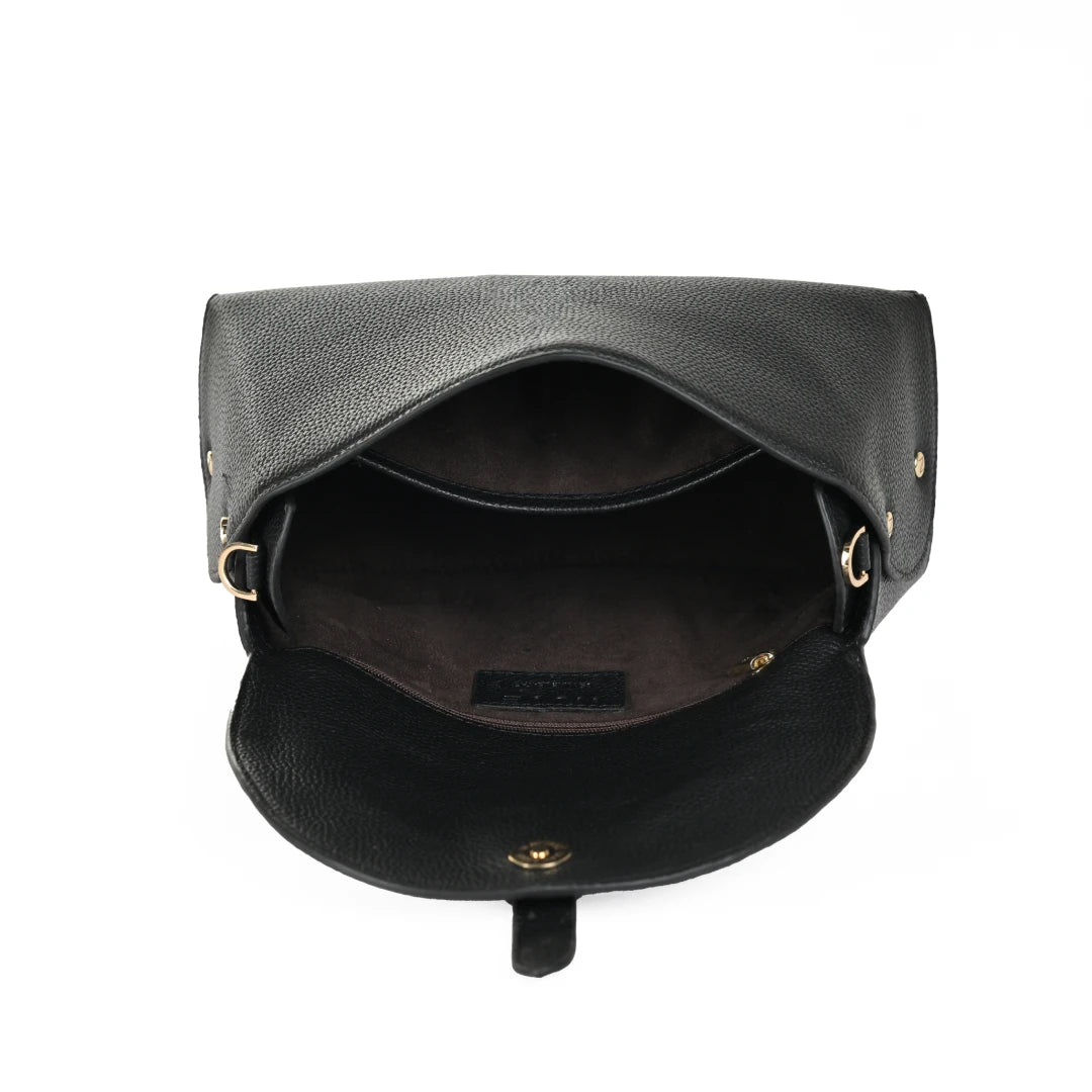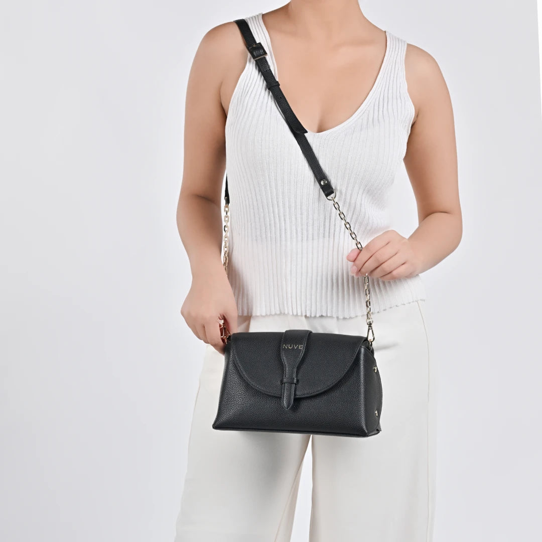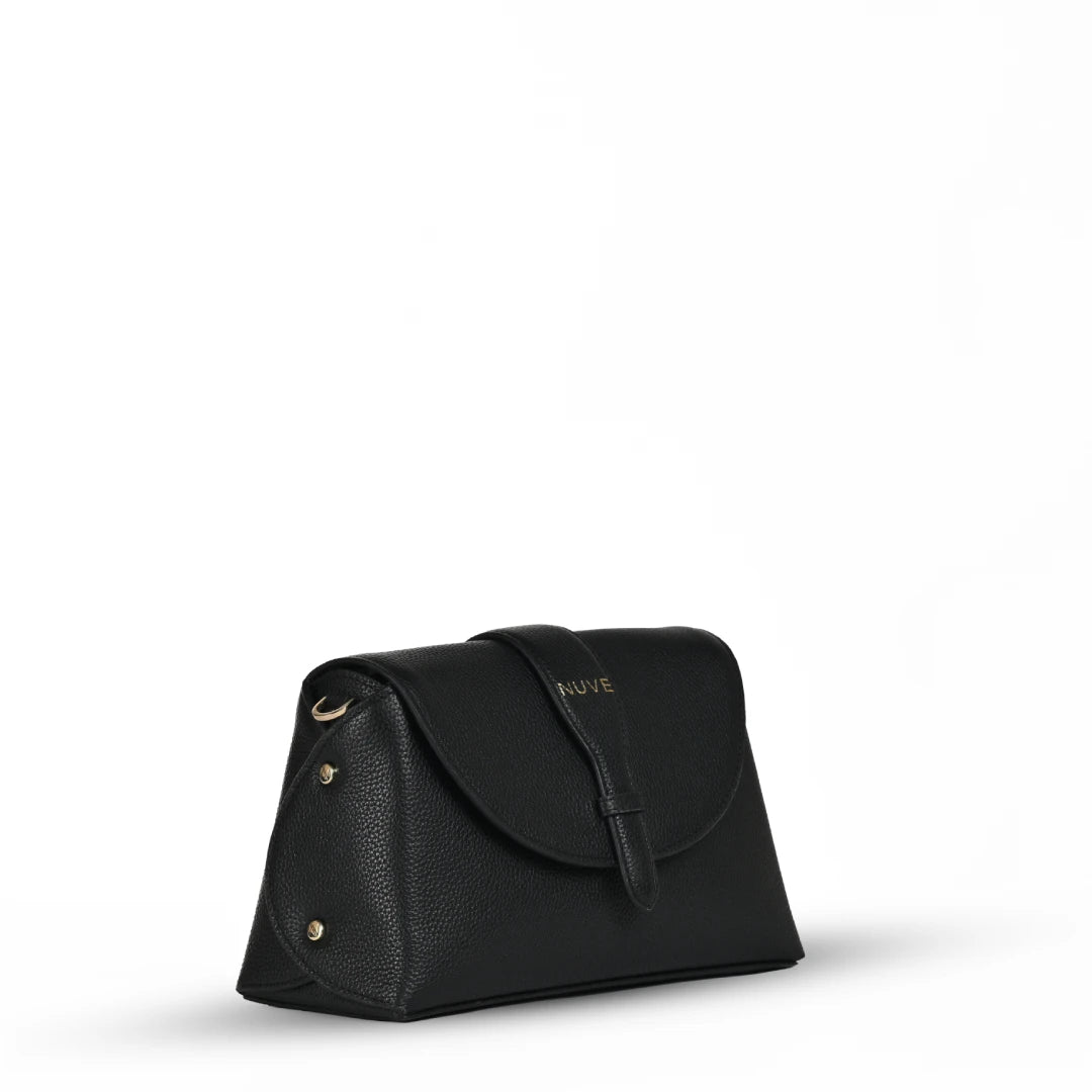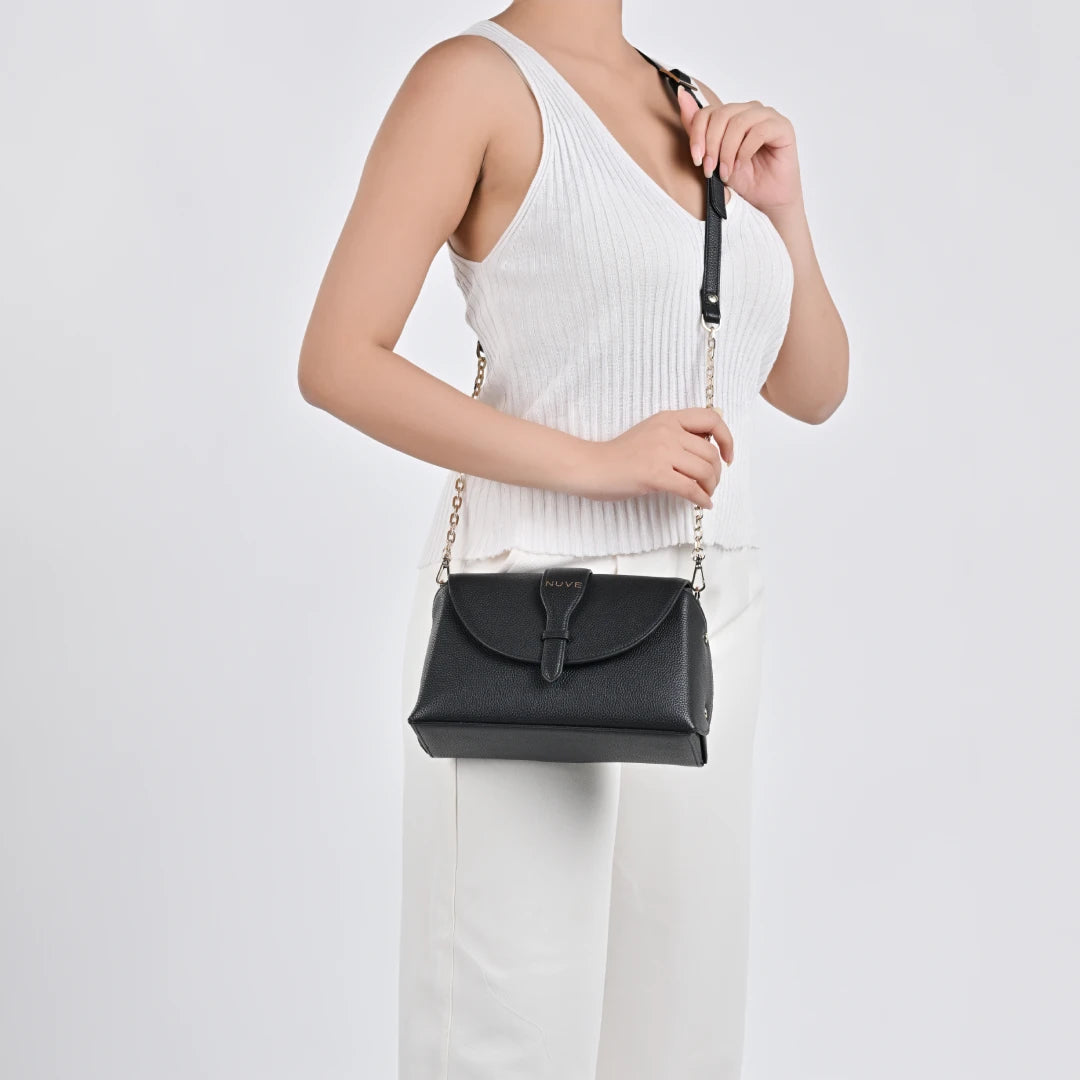 NUVE Genuine Leather Crossbody Bag for Female - Structured Polished - Black