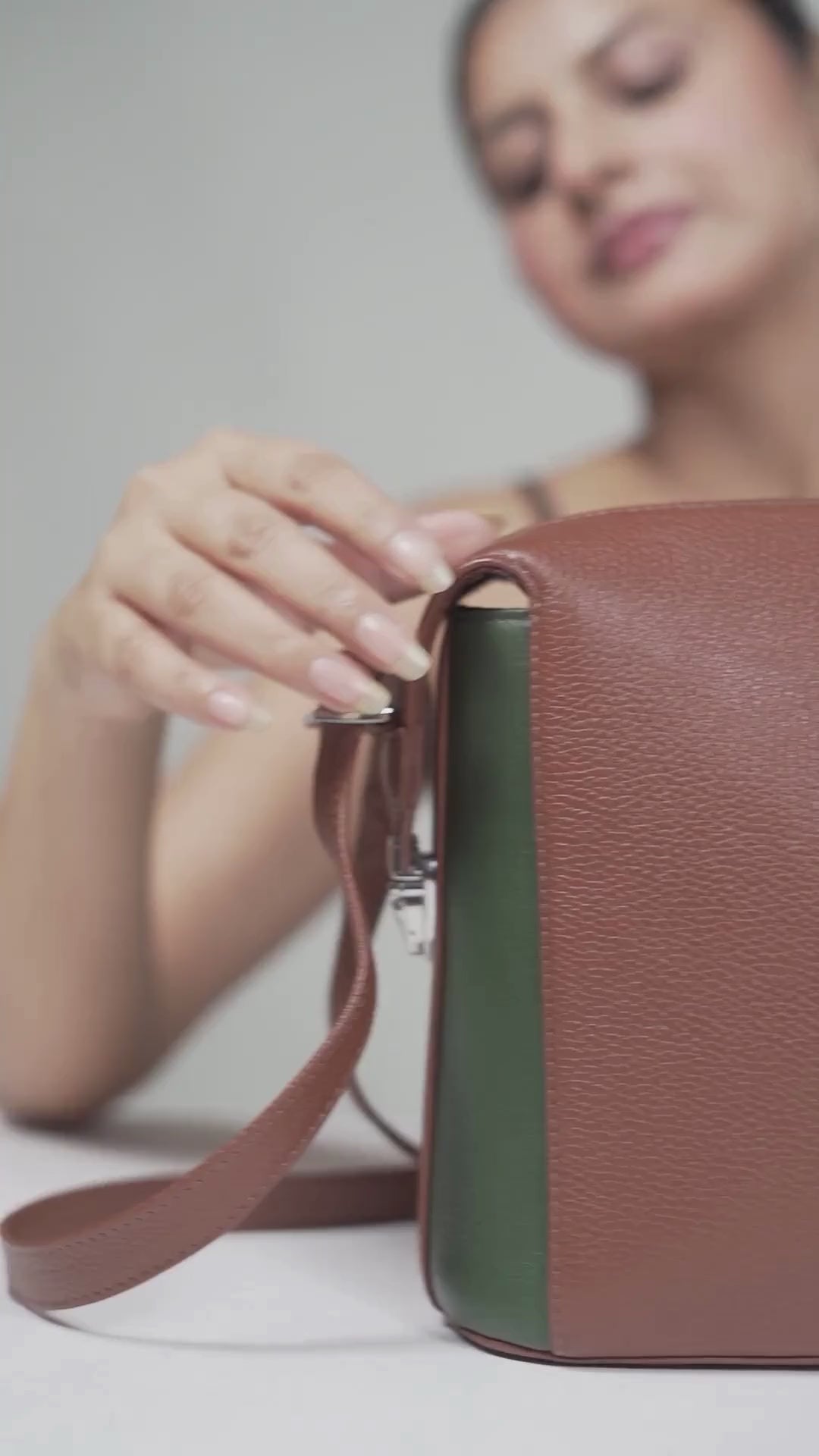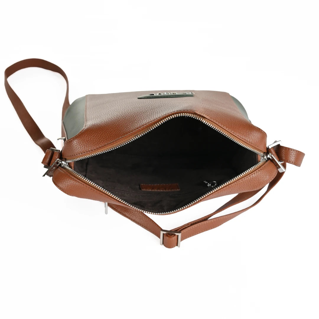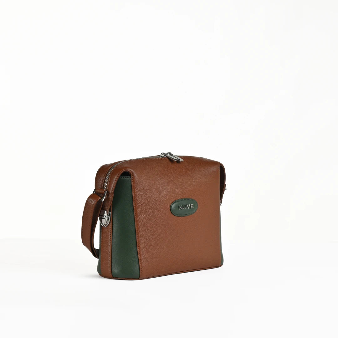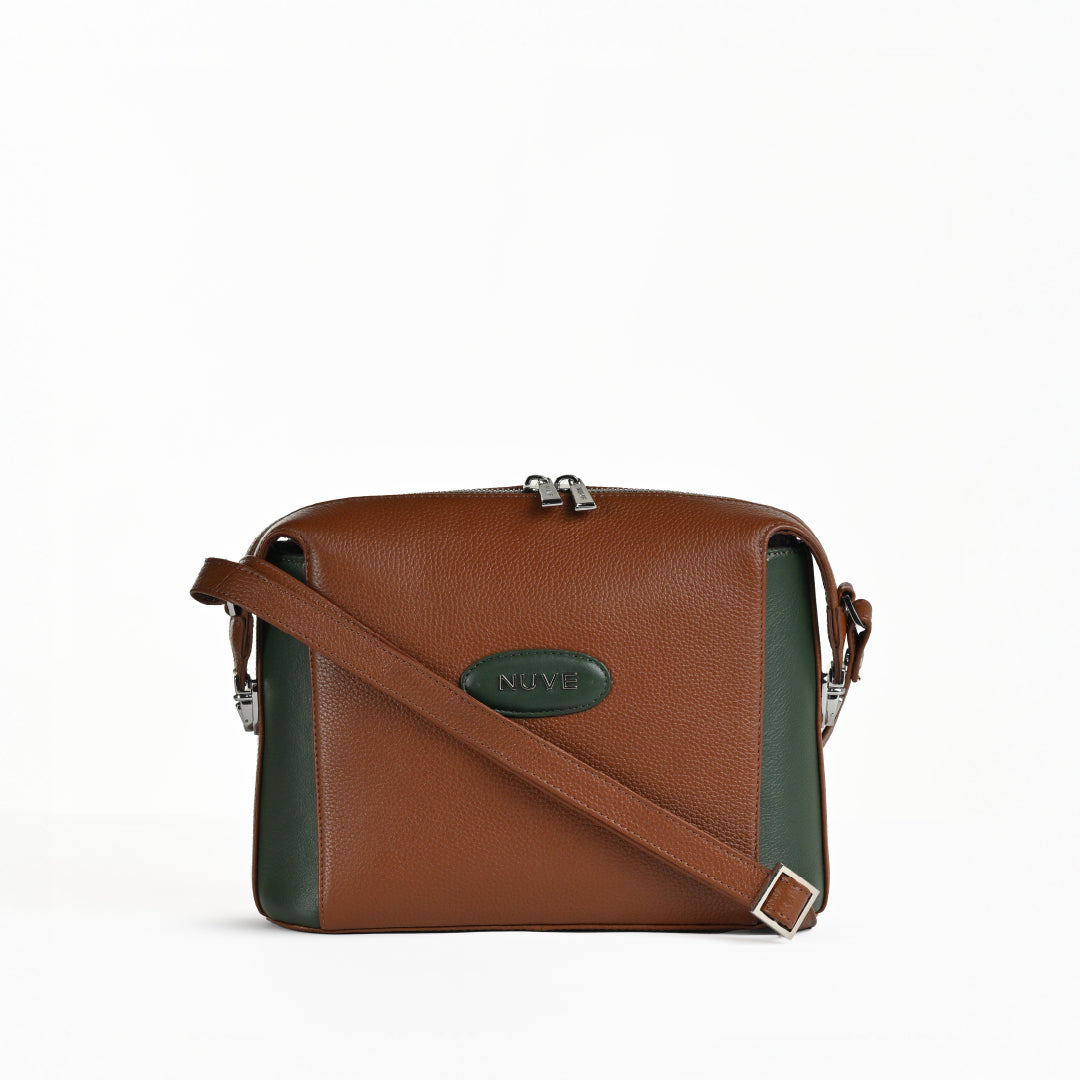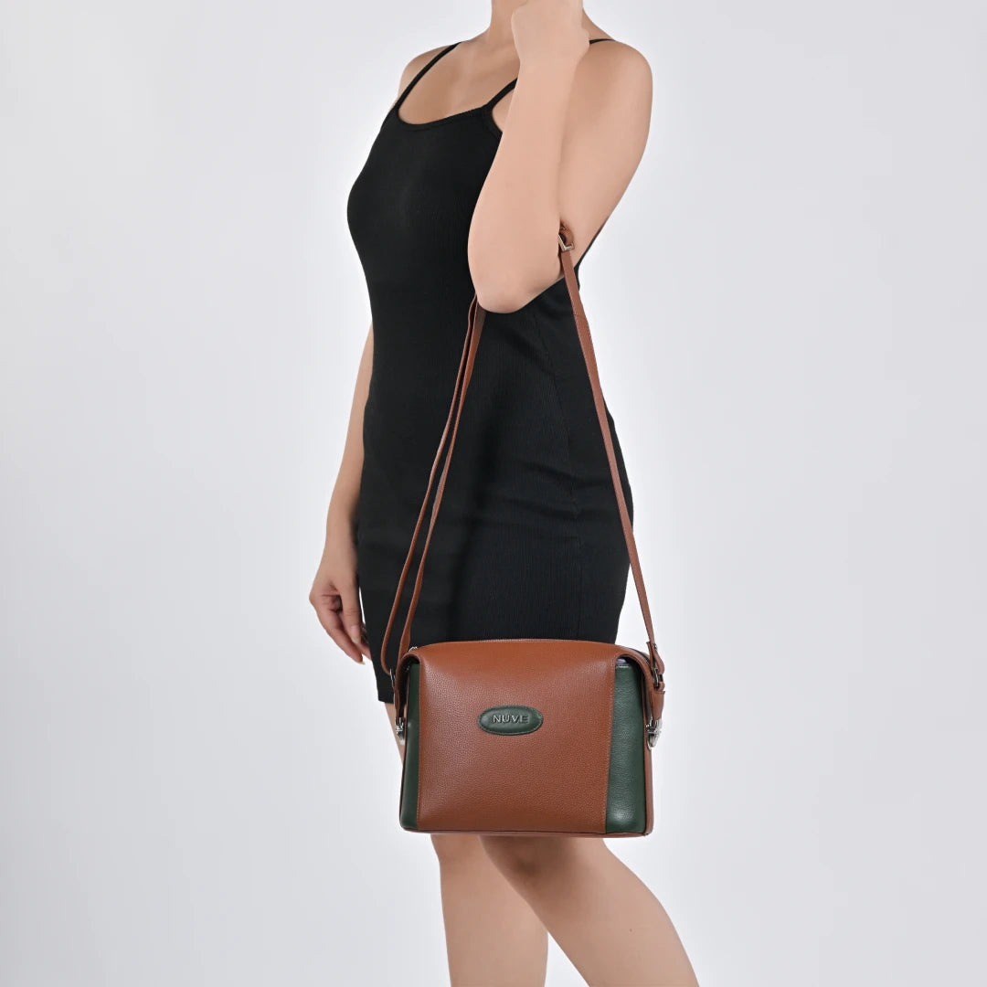 NUVE Genuine Leather Crossbody Bag for Female - Swagger - Bi Colour (Green & Chestnut)