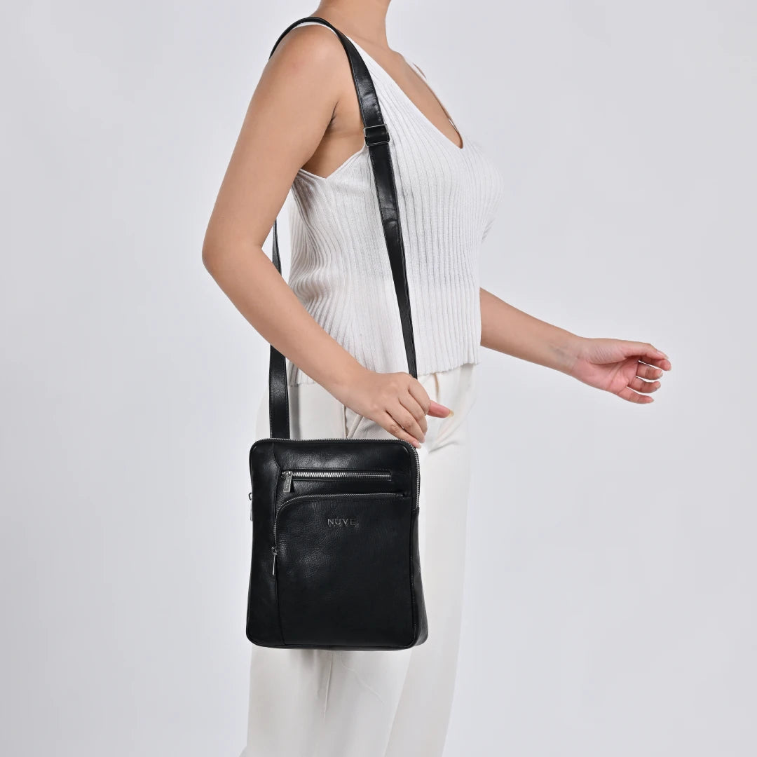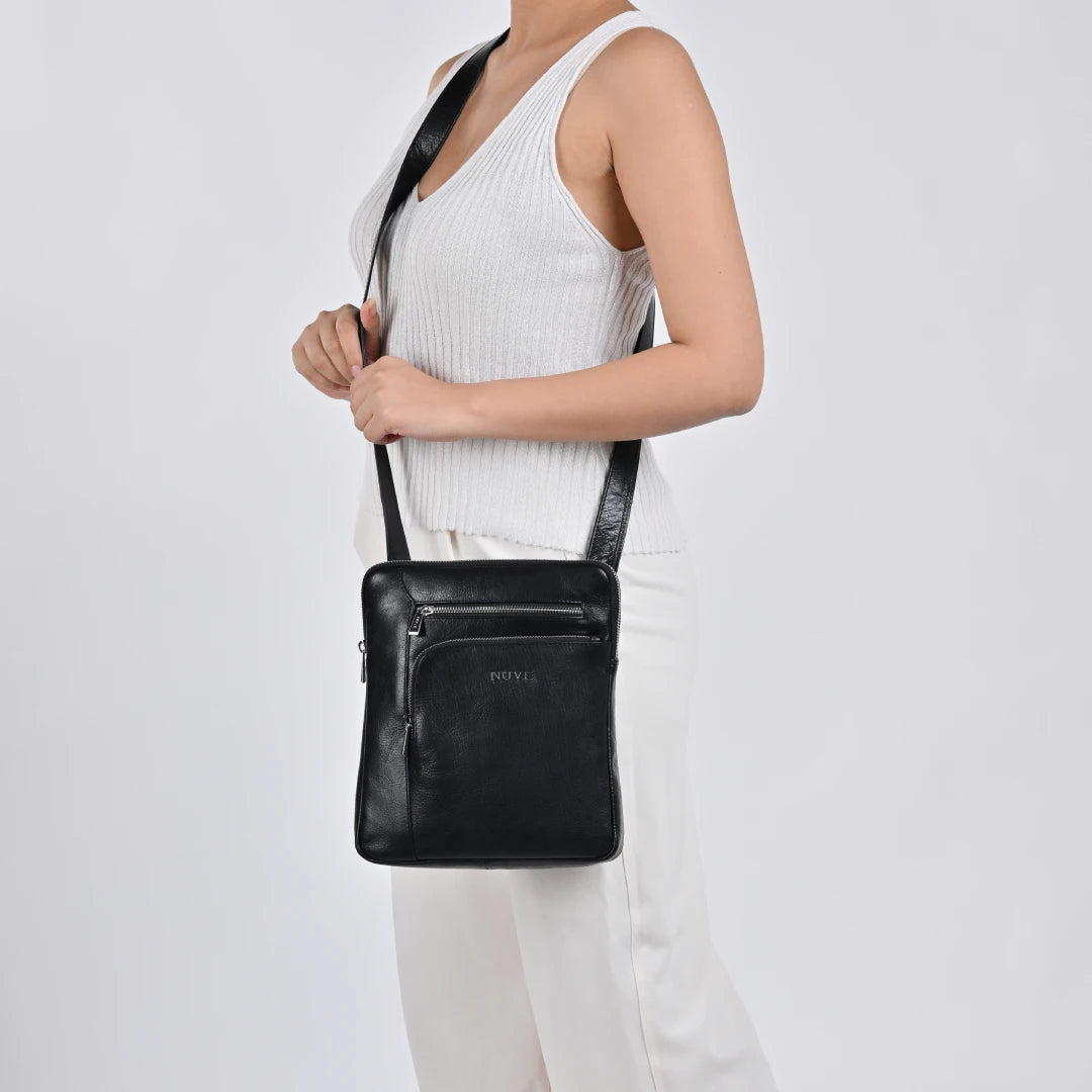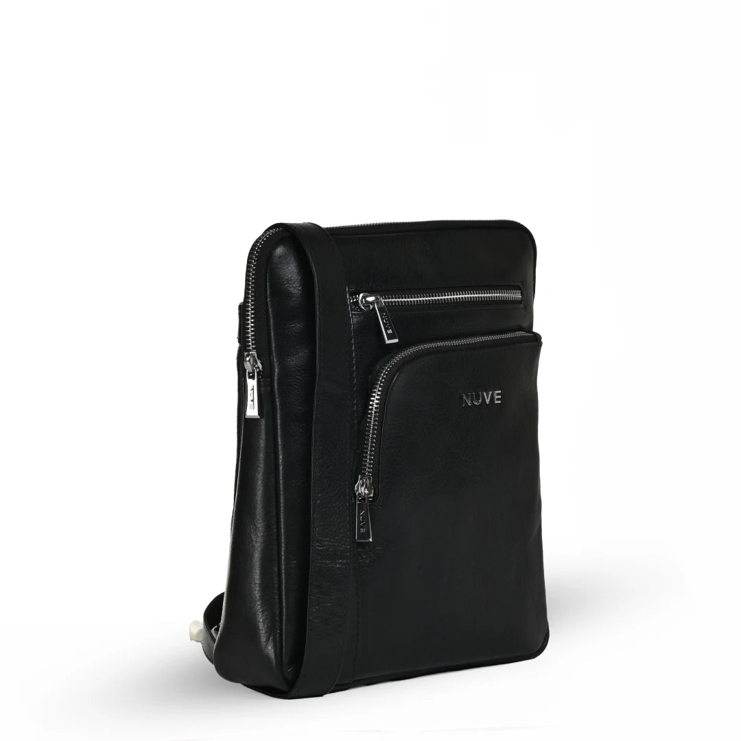 NUVE Genuine Leather Crossbody Bag for Men Small - Compact Messenger Bag- Black