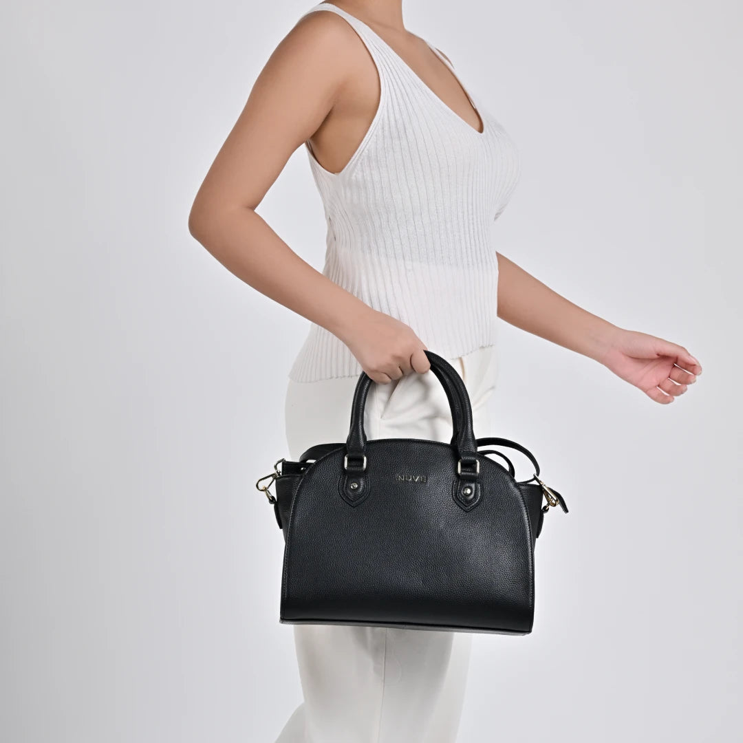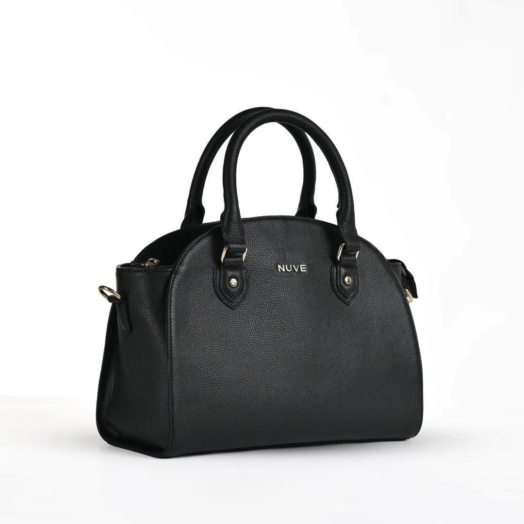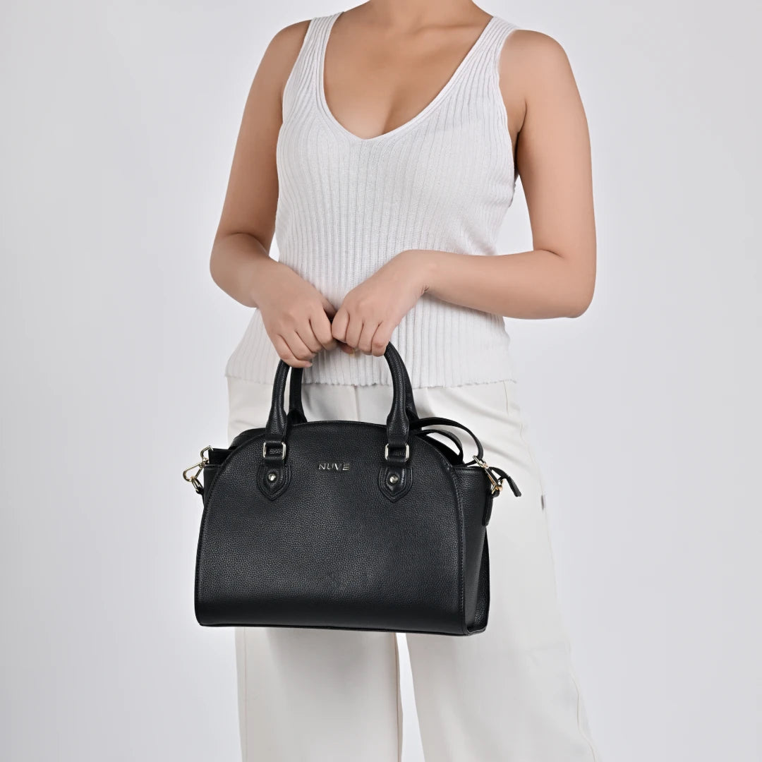 NUVE Genuine Leather Hand Bag for Female - Bucket Structured Everyday Ware - Black