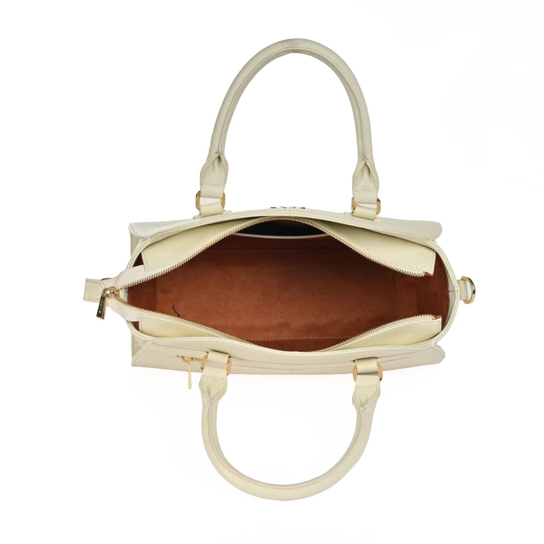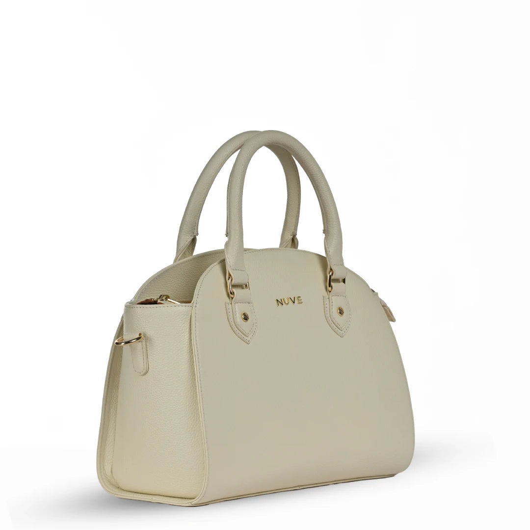 NUVE Genuine Leather Hand Bag for Female - Bucket Structured Everyday Ware - Stone