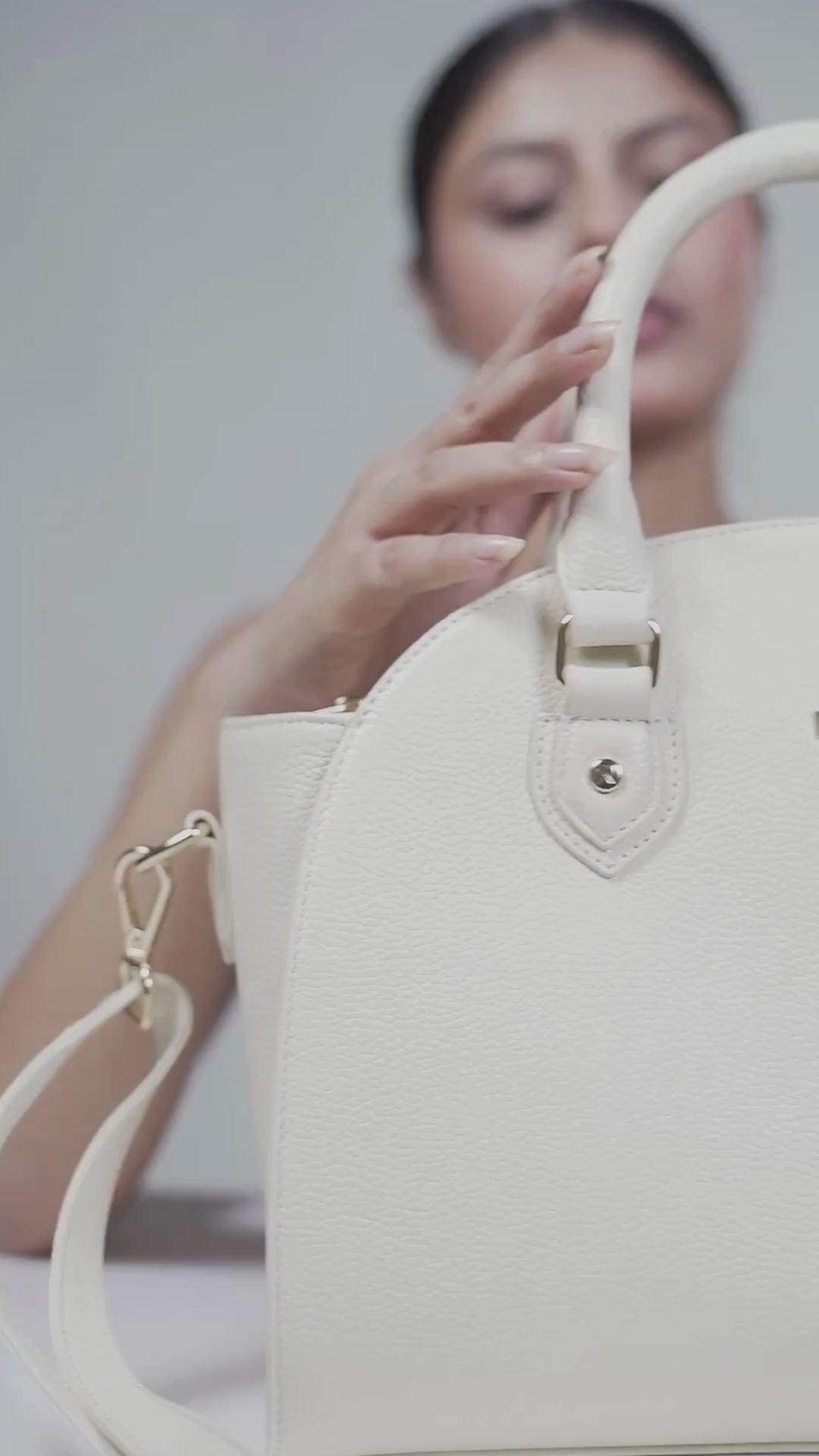 Simple and well-structured, this handbag is designed with everyday functionality in mind. Its silhouette is upright and softly rounded at the top, giving it a balanced, approachable look. The metal zipper runs smoothly across the main compartment, while a mix of zip and open pockets keeps things organized inside. Crafted from 100% genuine leather grain, it comes in classic tones like Black and Stone, and includes both a top handle and a detachable shoulder strap for flexible use. A clean and comfortable choice for those who like a medium-sized handbag with everyday versatility.