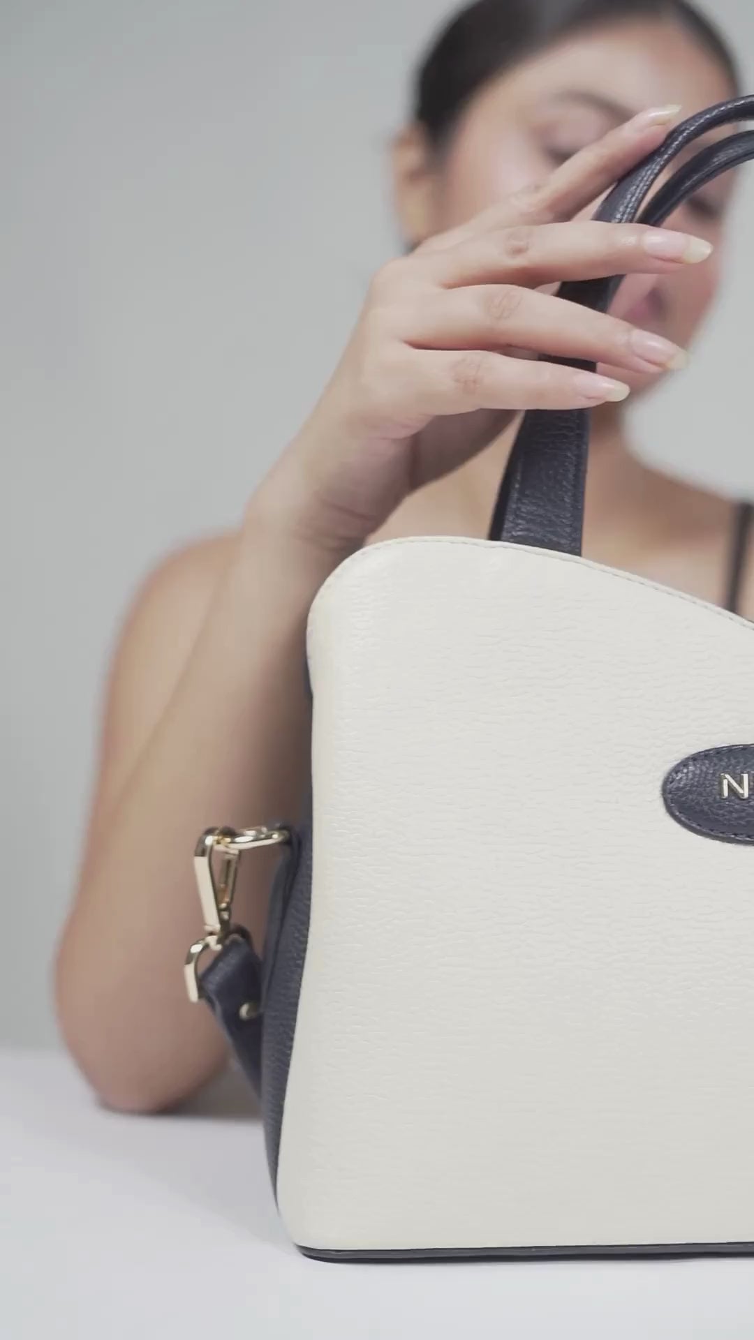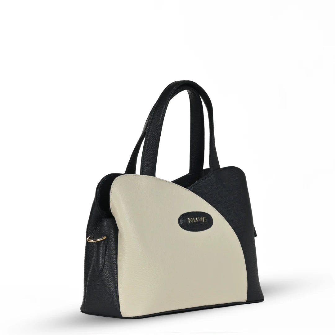 NUVE Genuine Leather Hand Bag for Female - Detailed Structure - Bi Colour (Navy & Stone)