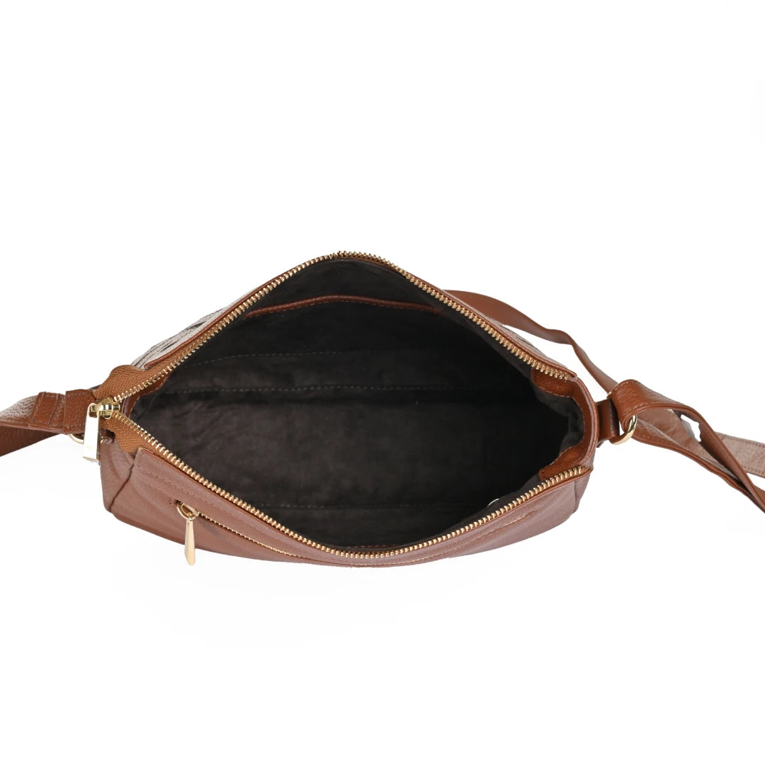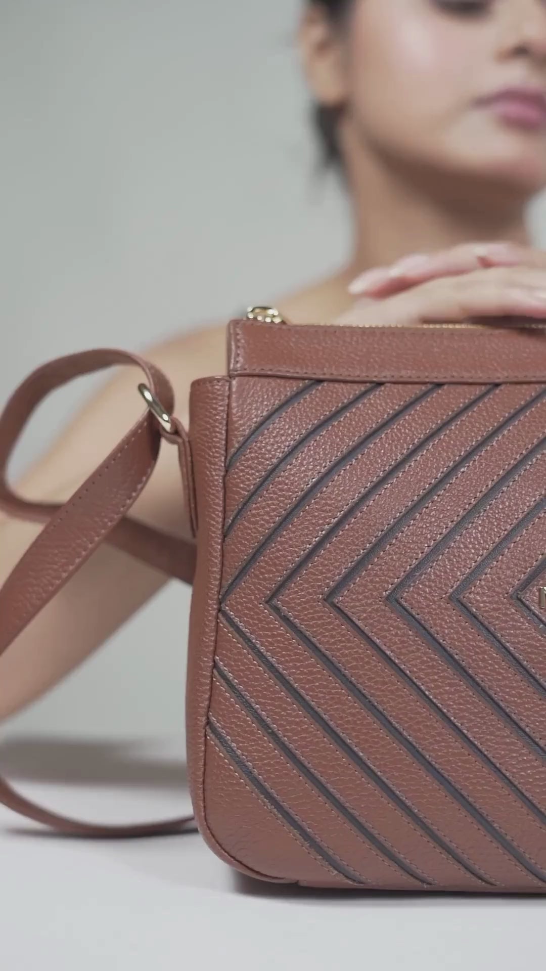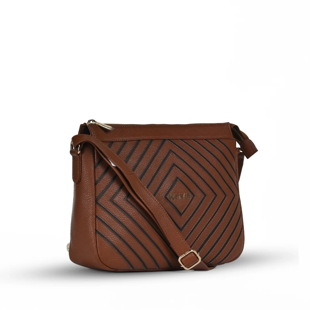 NUVE Genuine Leather Hand Bag for Female - Geometric Designed - Chestnut