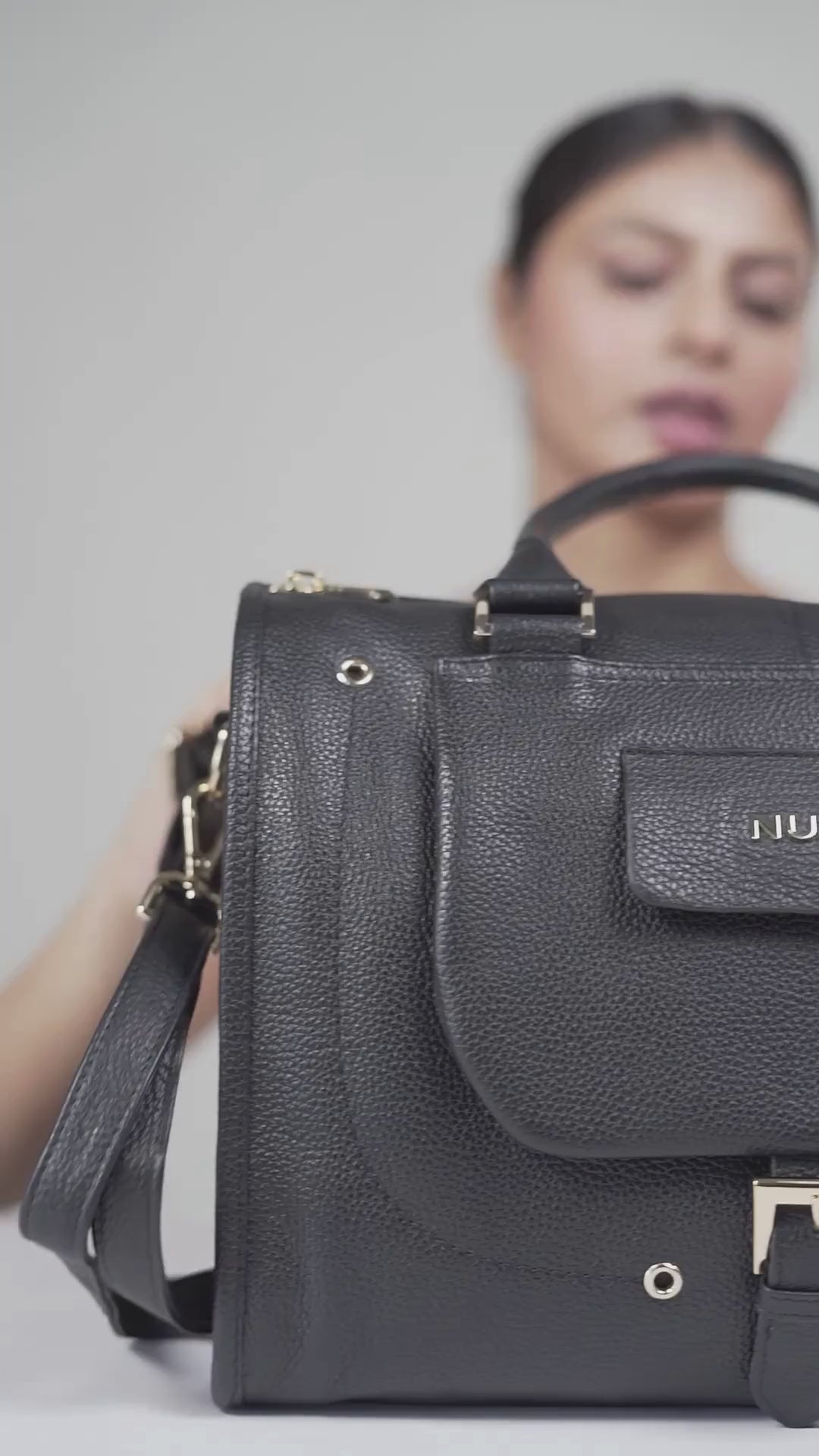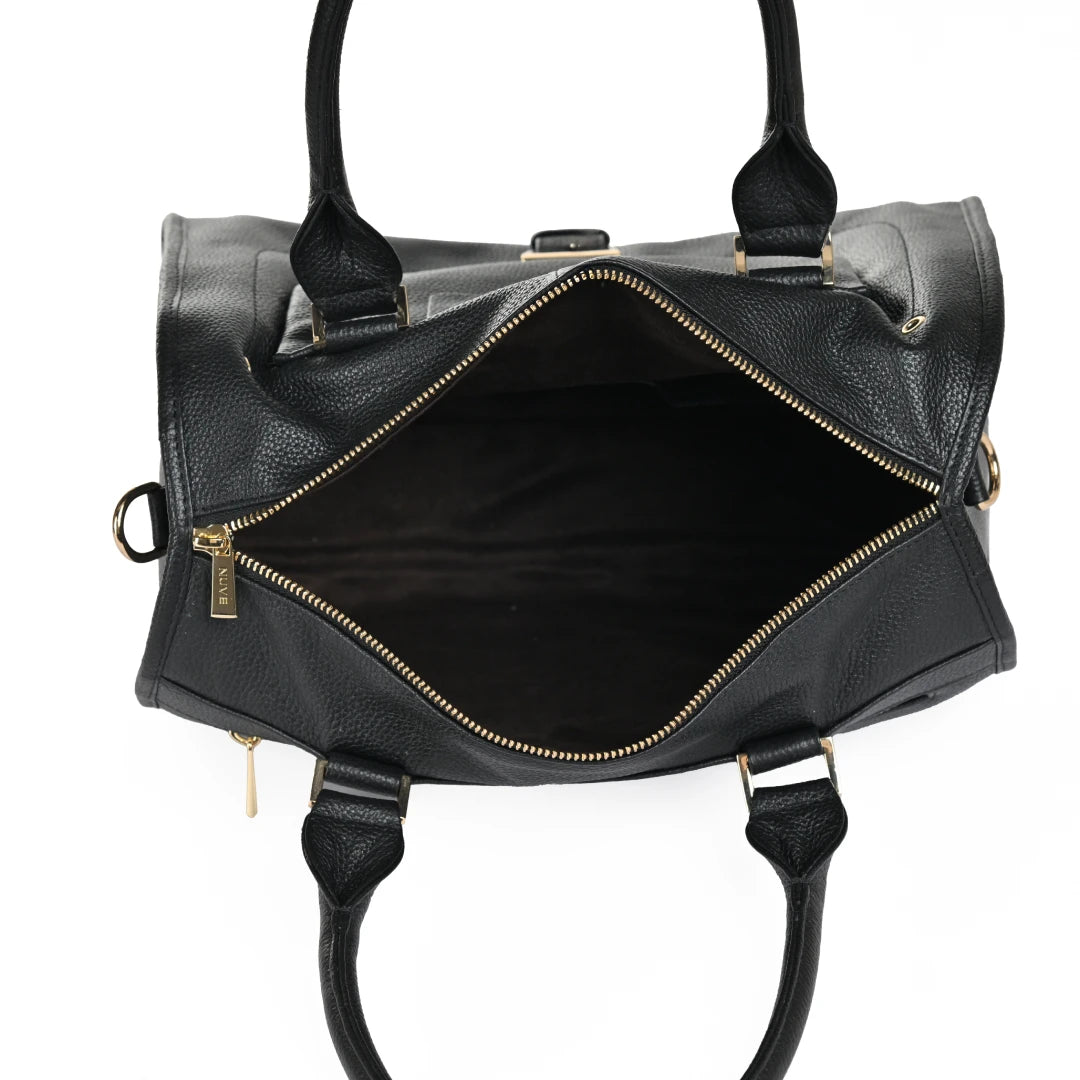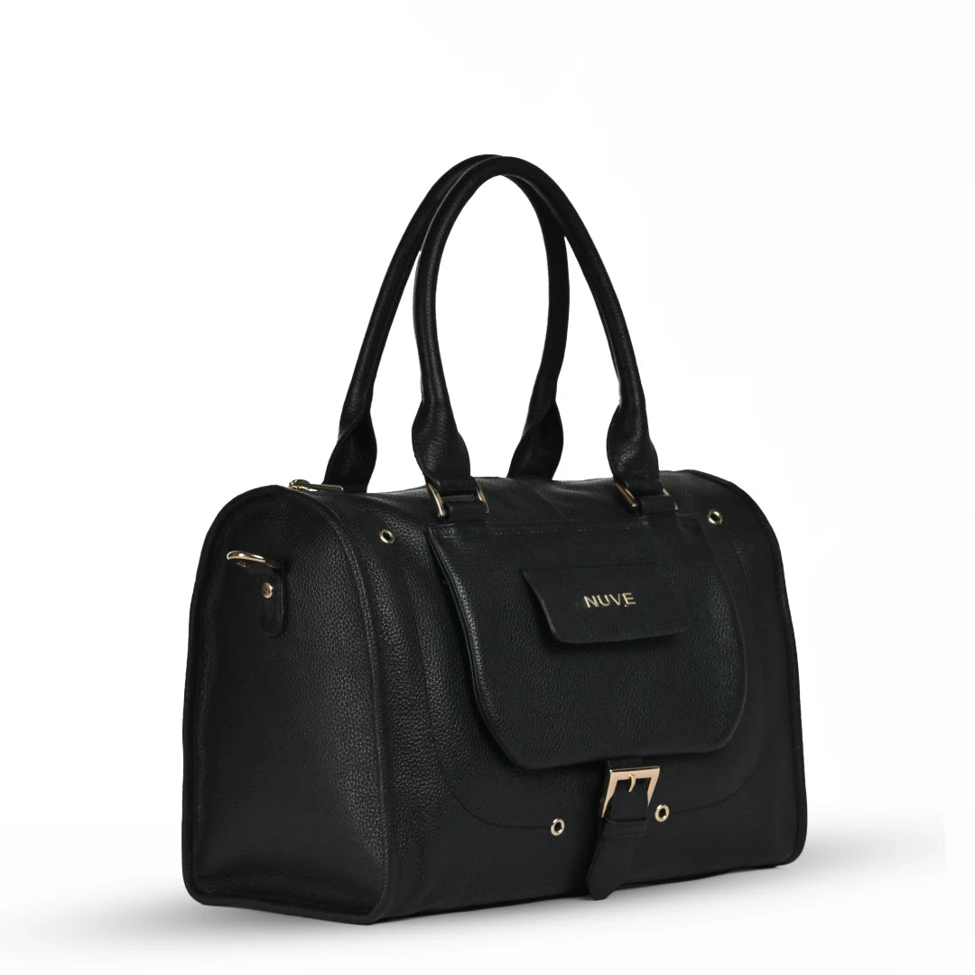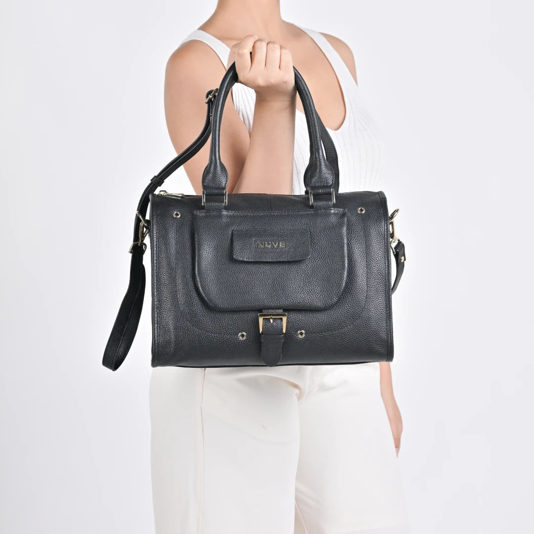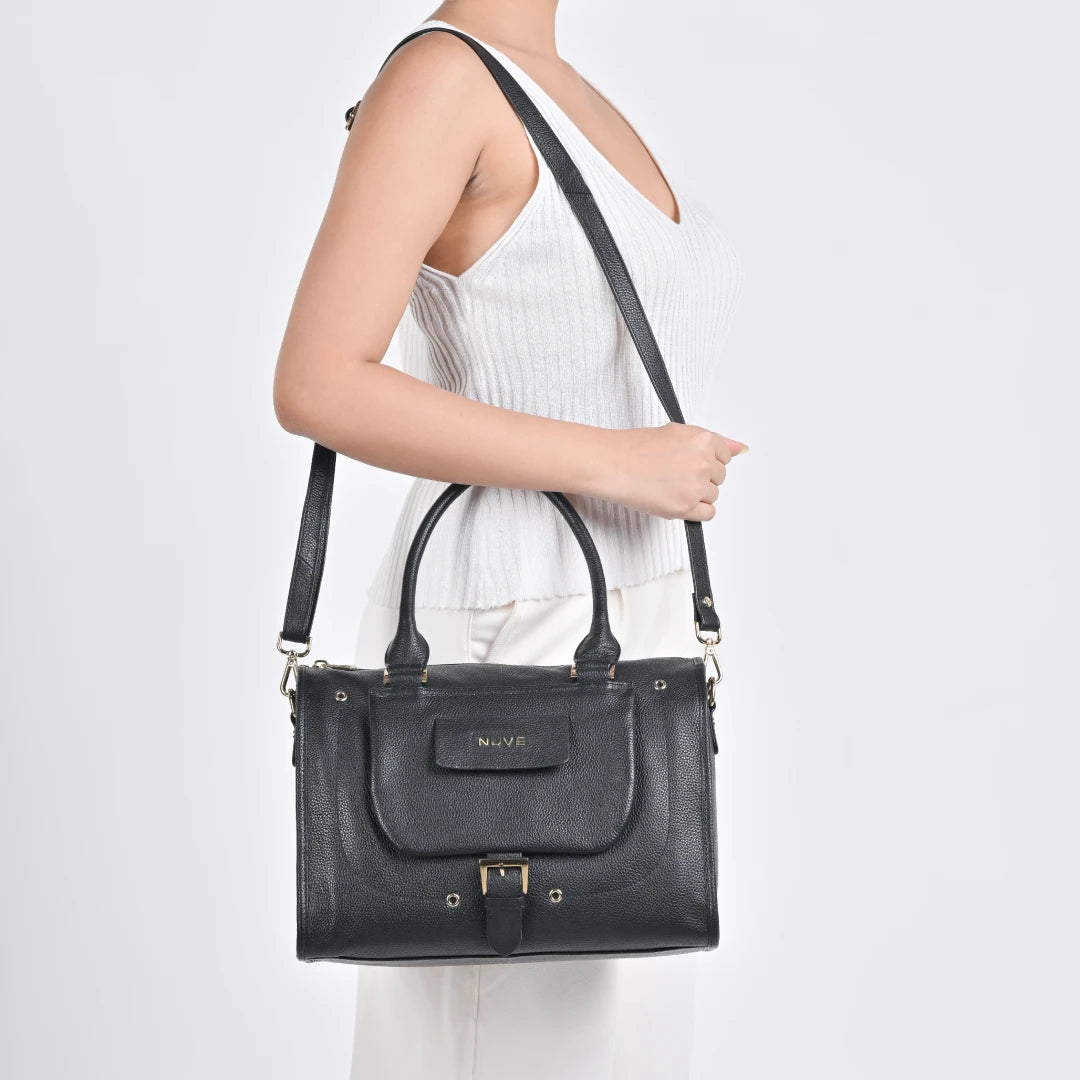 NUVE Genuine Leather Hand Bag for Female - Structured All Occasion - Black