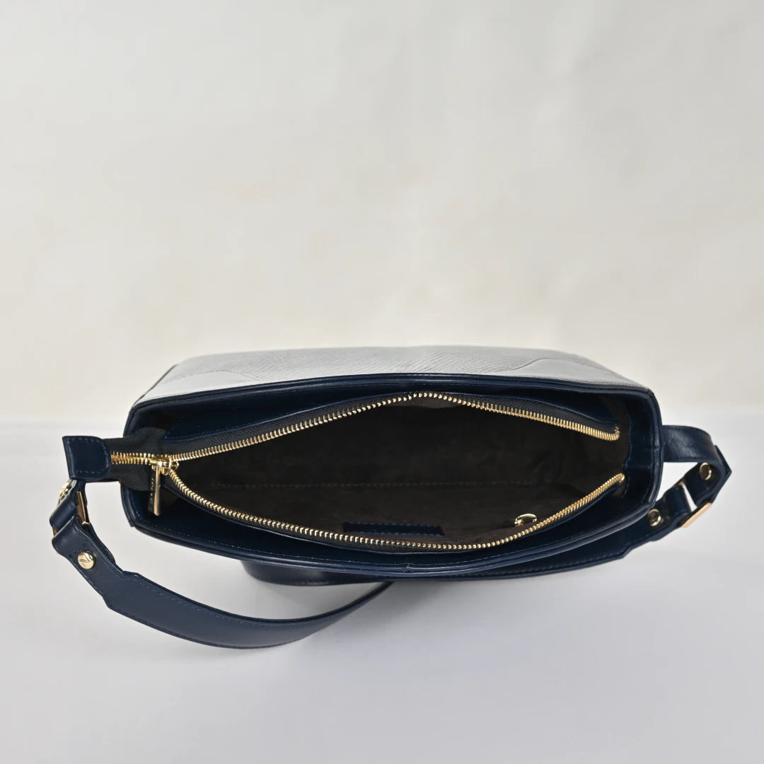 NUVE Genuine Leather Hand Bag for Female - Structured Rounded Top - Navy
