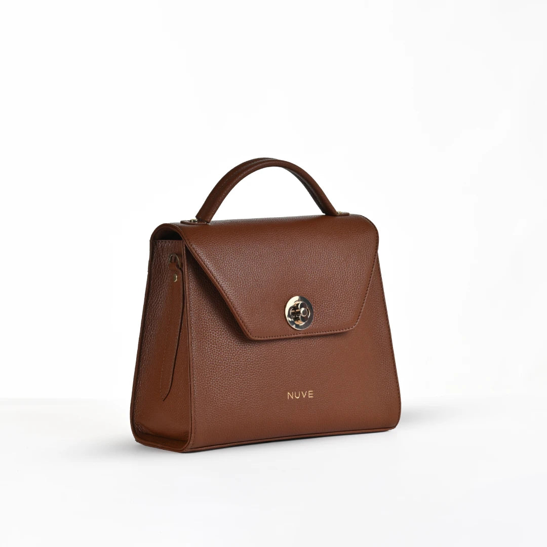 NUVE Genuine Leather Hand Bag for Female - Structured Timeless Design - Chestnut