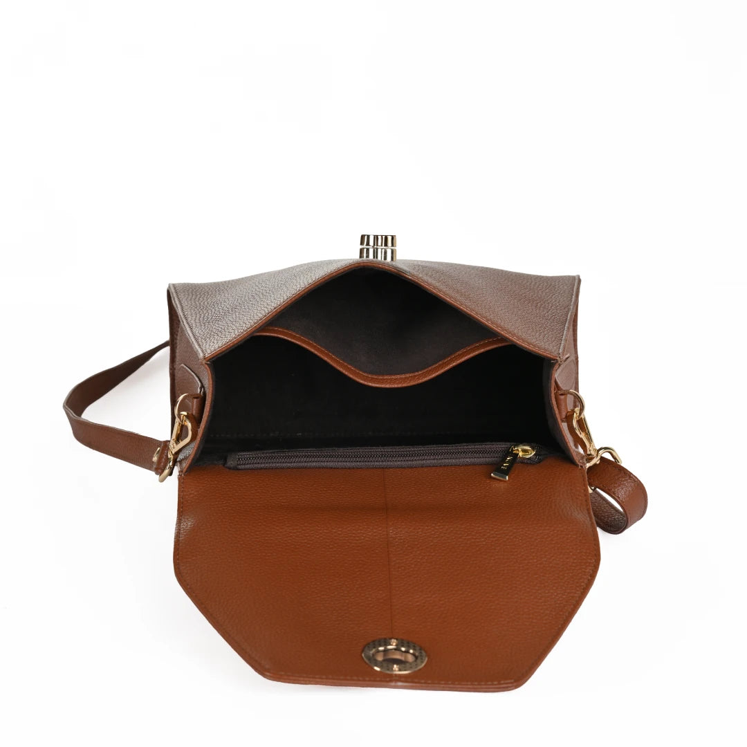 With its sharp lines and elegant structure, this handbag has a refined presence that feels both timeless and modern. The standout feature is its metal lock closure, which adds a sense of security and detail to the front. Designed with top handles and a detachable shoulder strap, it easily shifts from a formal carry to a more relaxed, crossbody style. The leather grain is smooth and durable, available in deep tones like Chestnut and Navy, making this bag a staple for work or occasions where polish matters. Structured, secure, and stylish — a dependable piece for days when you want to keep it classic and organized.