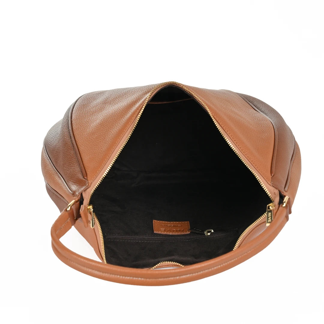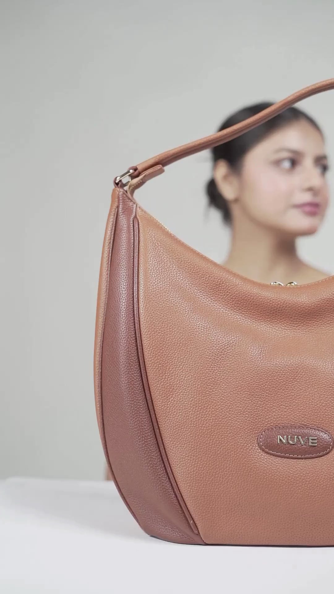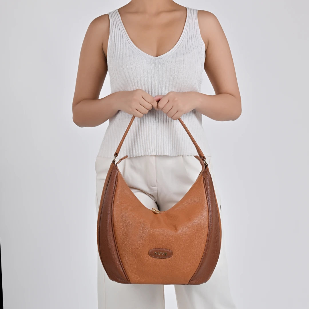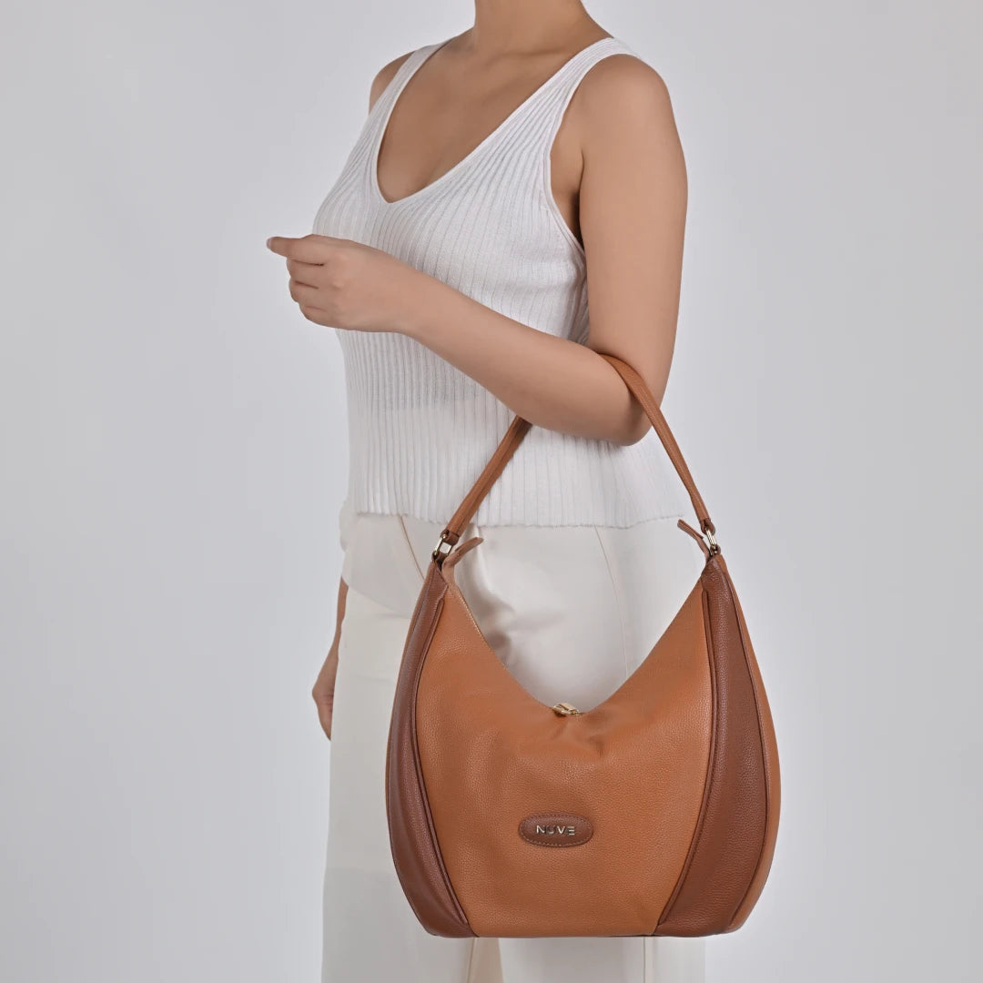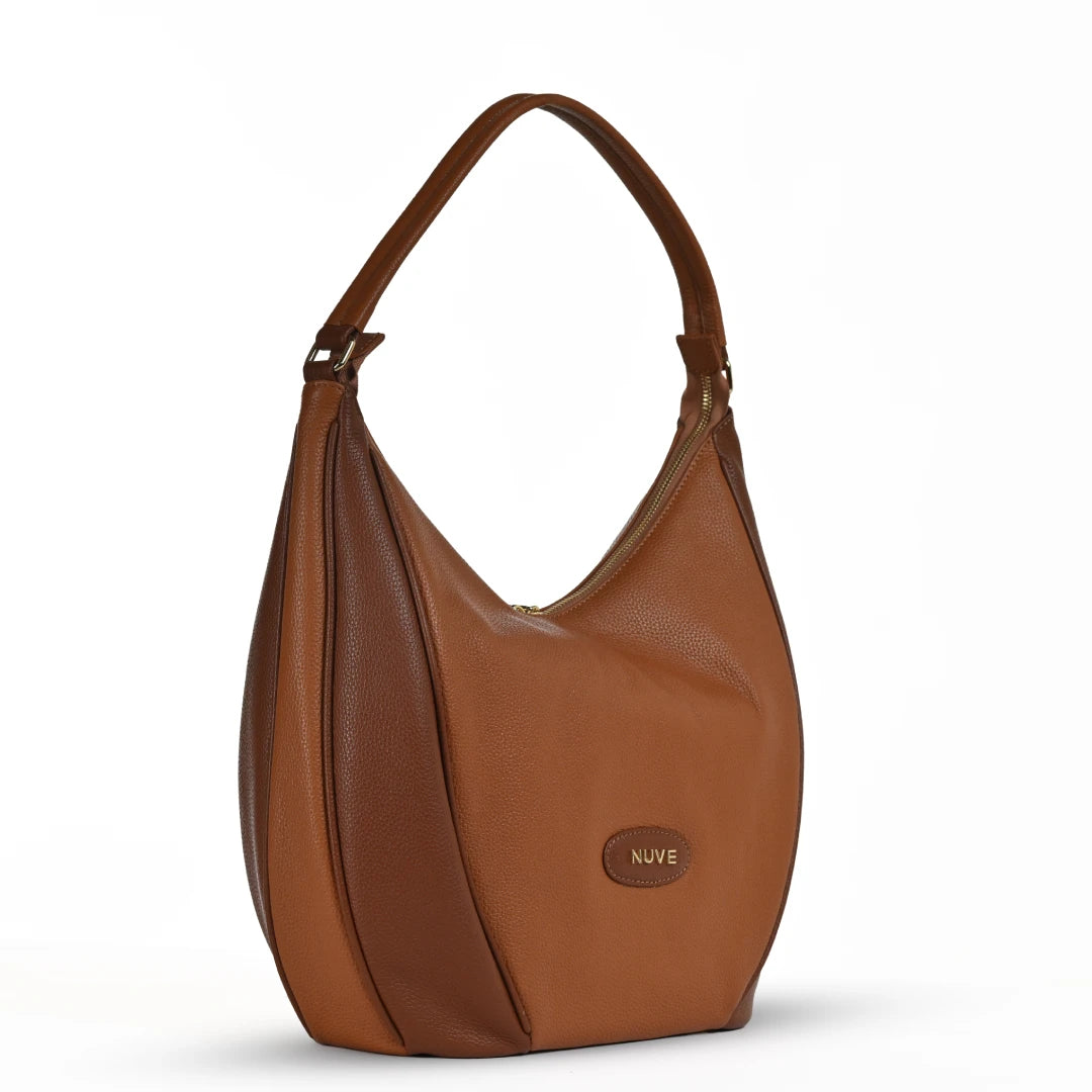 NUVE Genuine Leather Hobo Bag for Female - Structured Casual Wear - Bi Colour (Caramel & Chestnut)