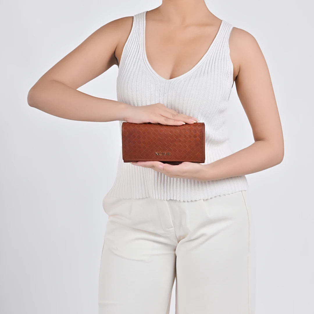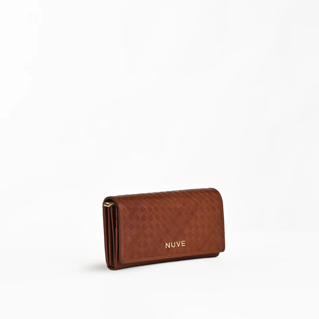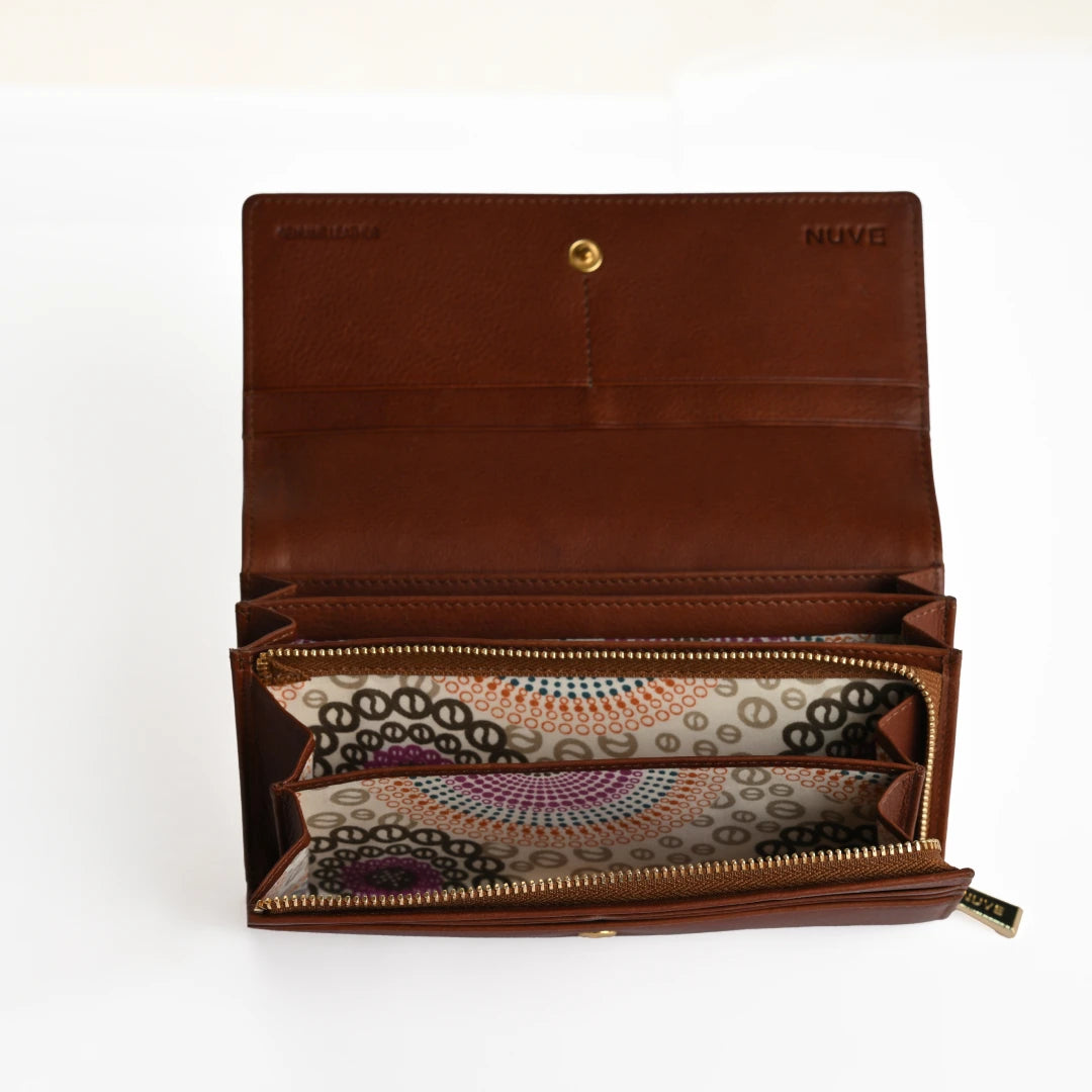 NUVE Genuine Leather Ladies Purse/Wallet Button Clouser - Tan
