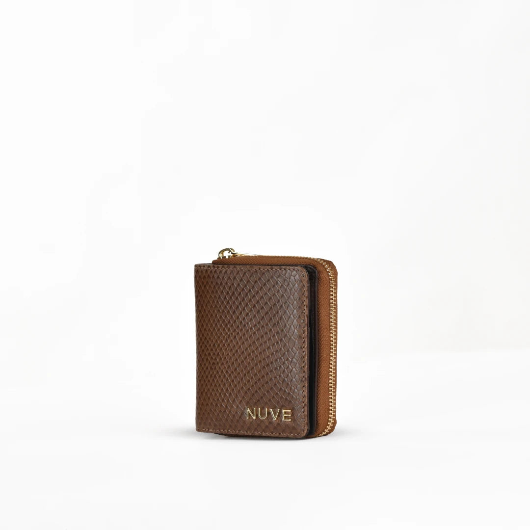 NUVE Genuine Leather Ladies Purse/Wallet Compact Structured - Brown