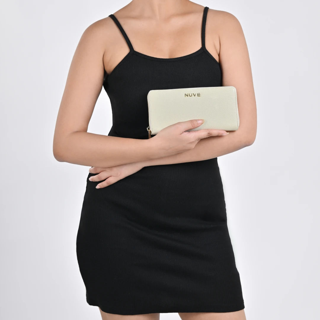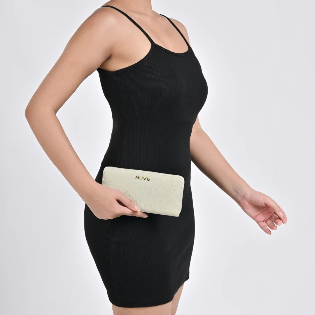 NUVE Genuine Leather Ladies Purse/Wallet Zip Clouser - Stone