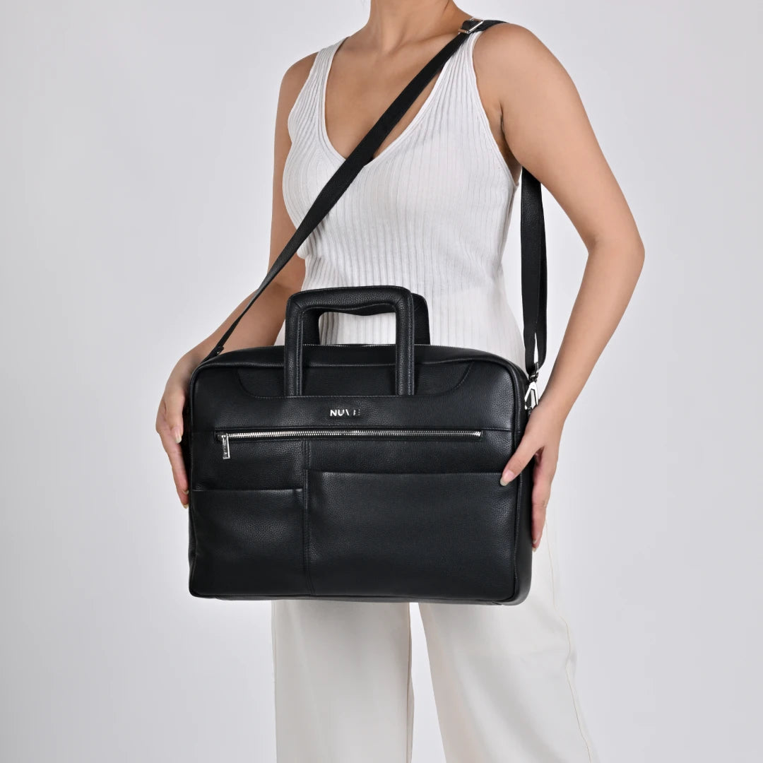 NUVE Genuine Leather Portfolio Bag for Men - Oversized Messenger Bag Laptop Carrier - Black