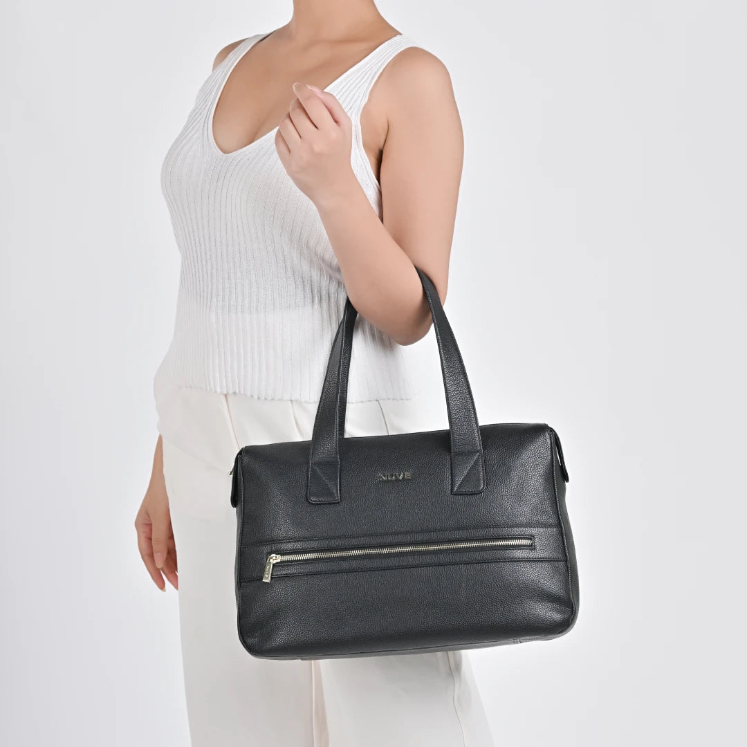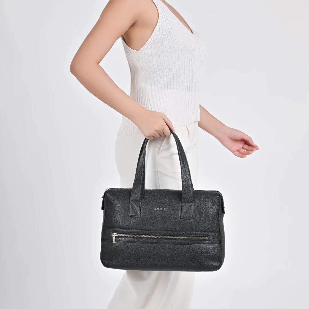 NUVE Genuine Leather Tote Bag for Female - Structured All Occassion - Black