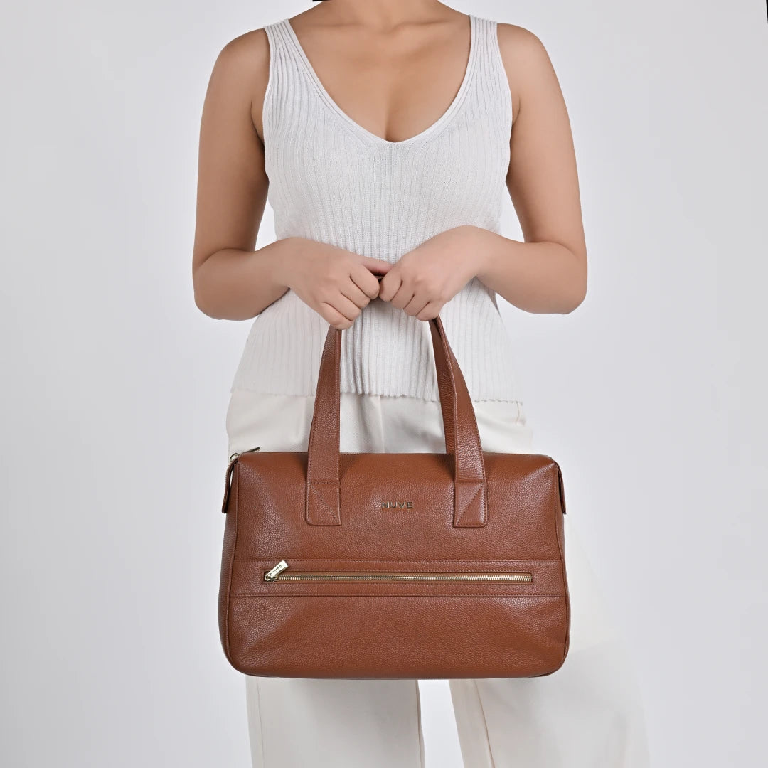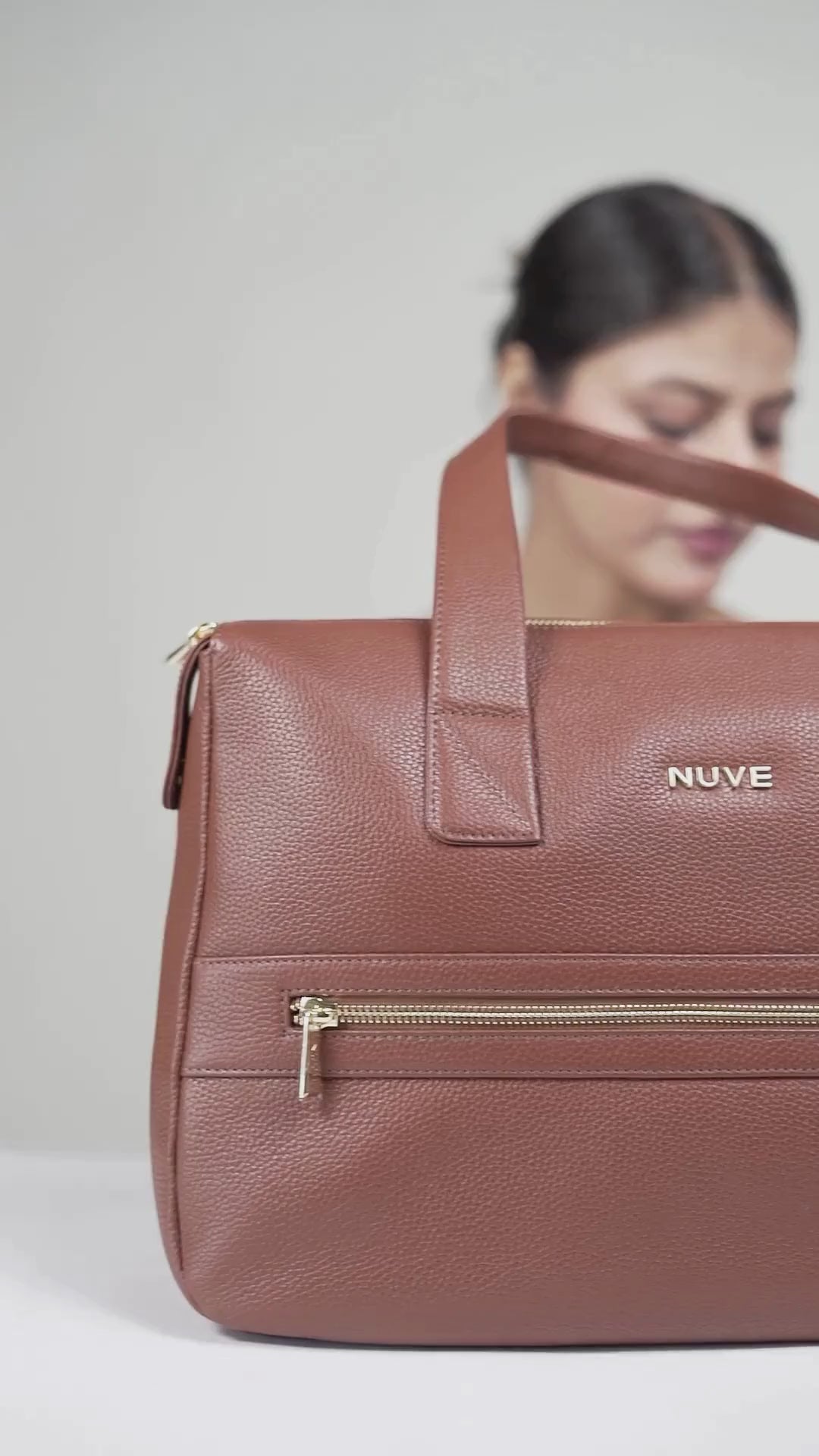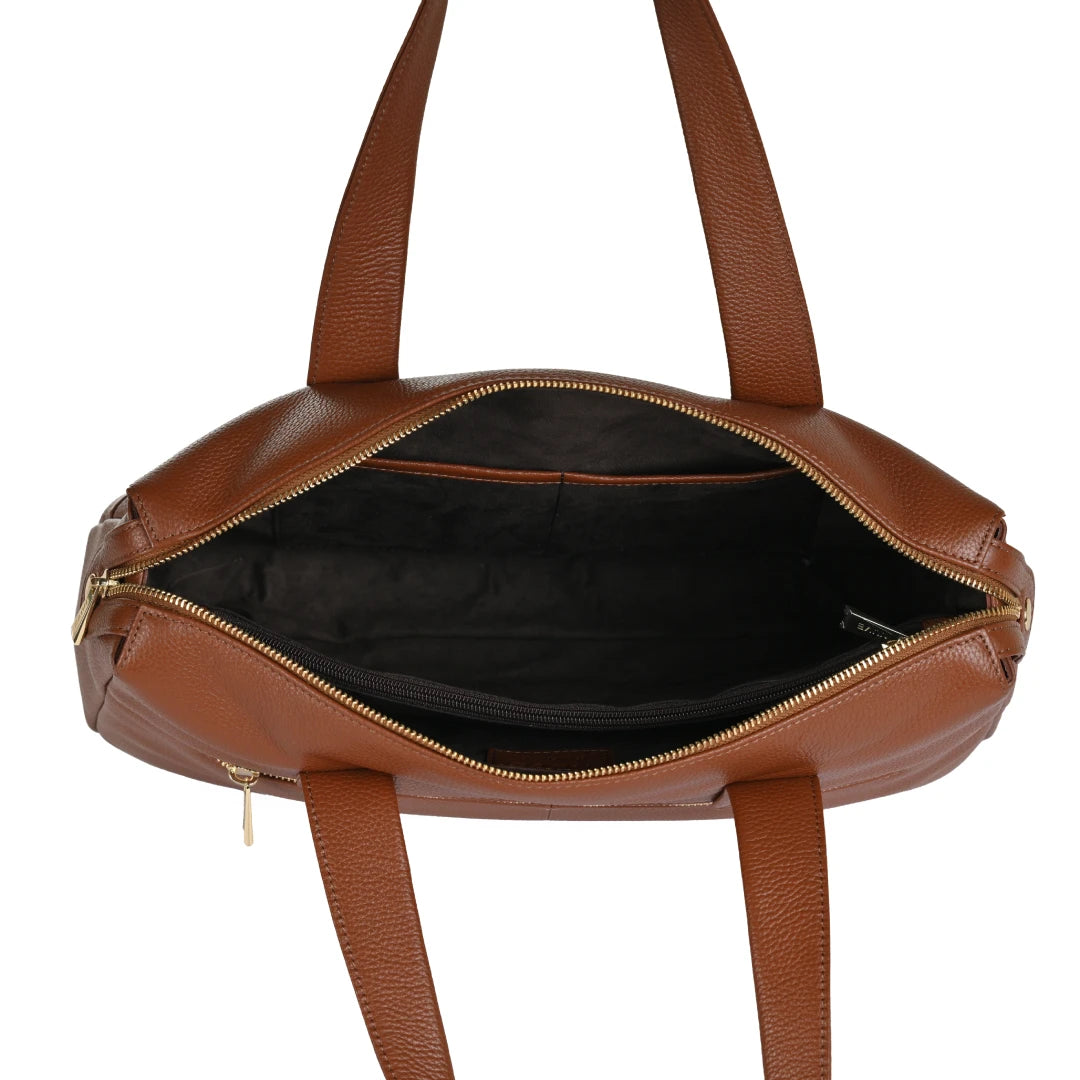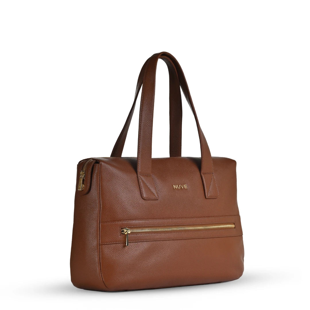 NUVE Genuine Leather Tote Bag for Female - Structured All Occassion -Chestnut