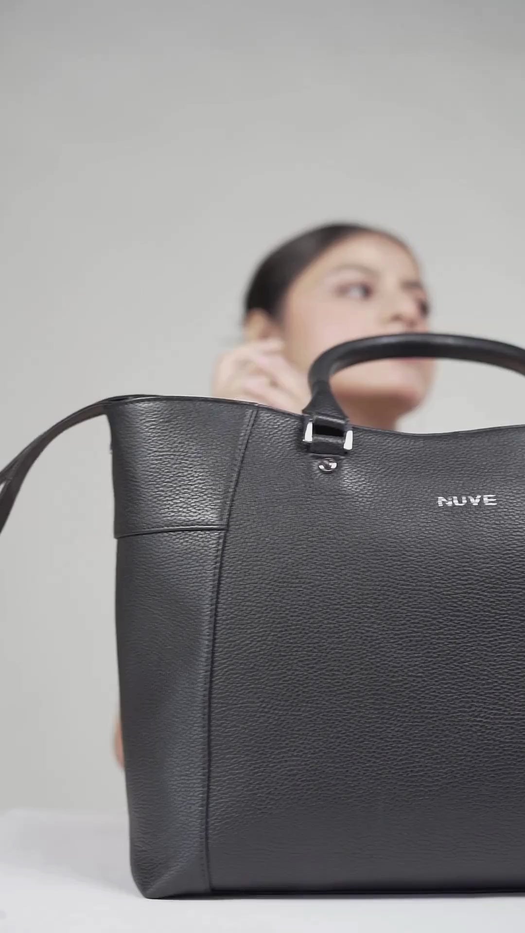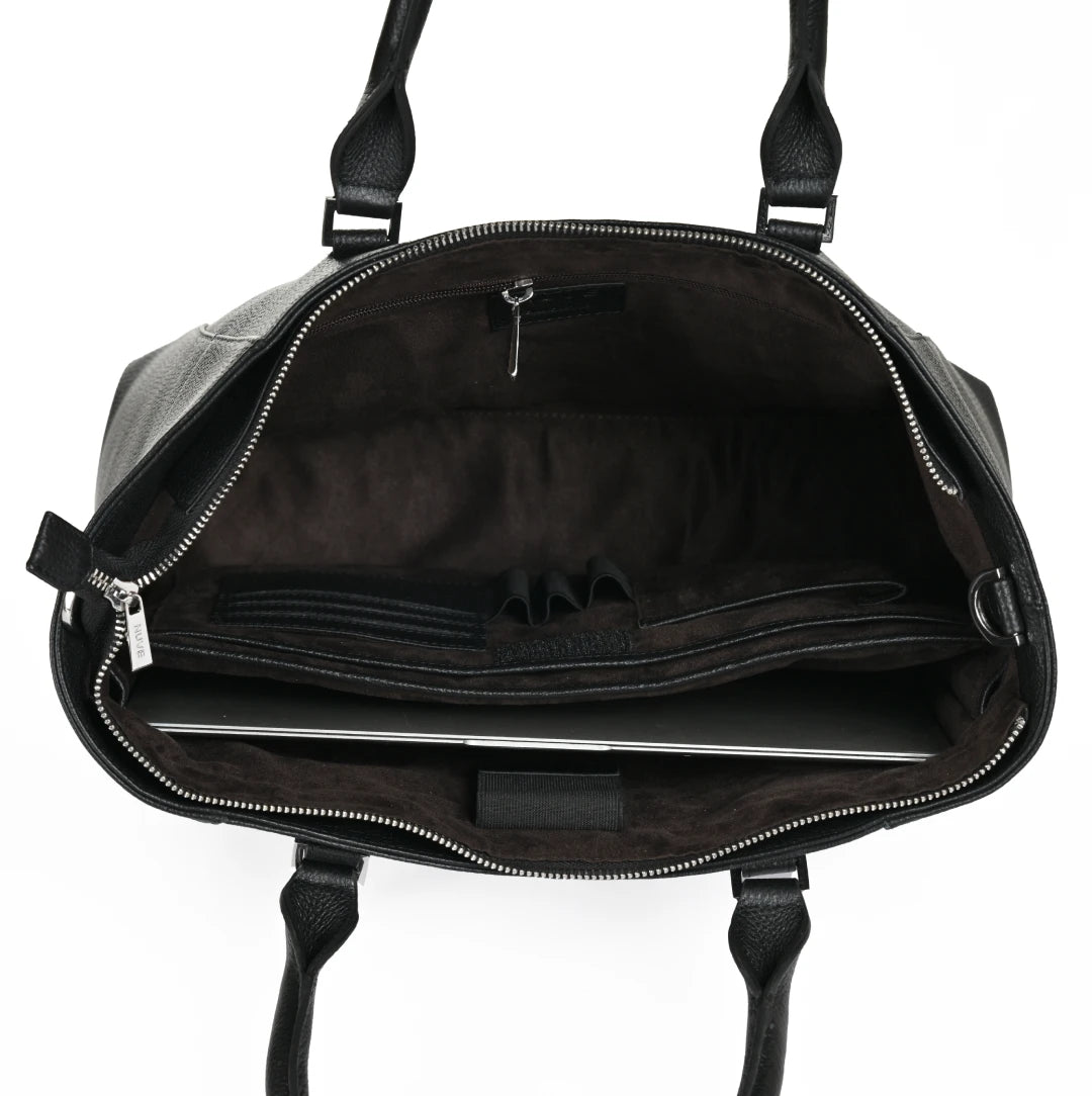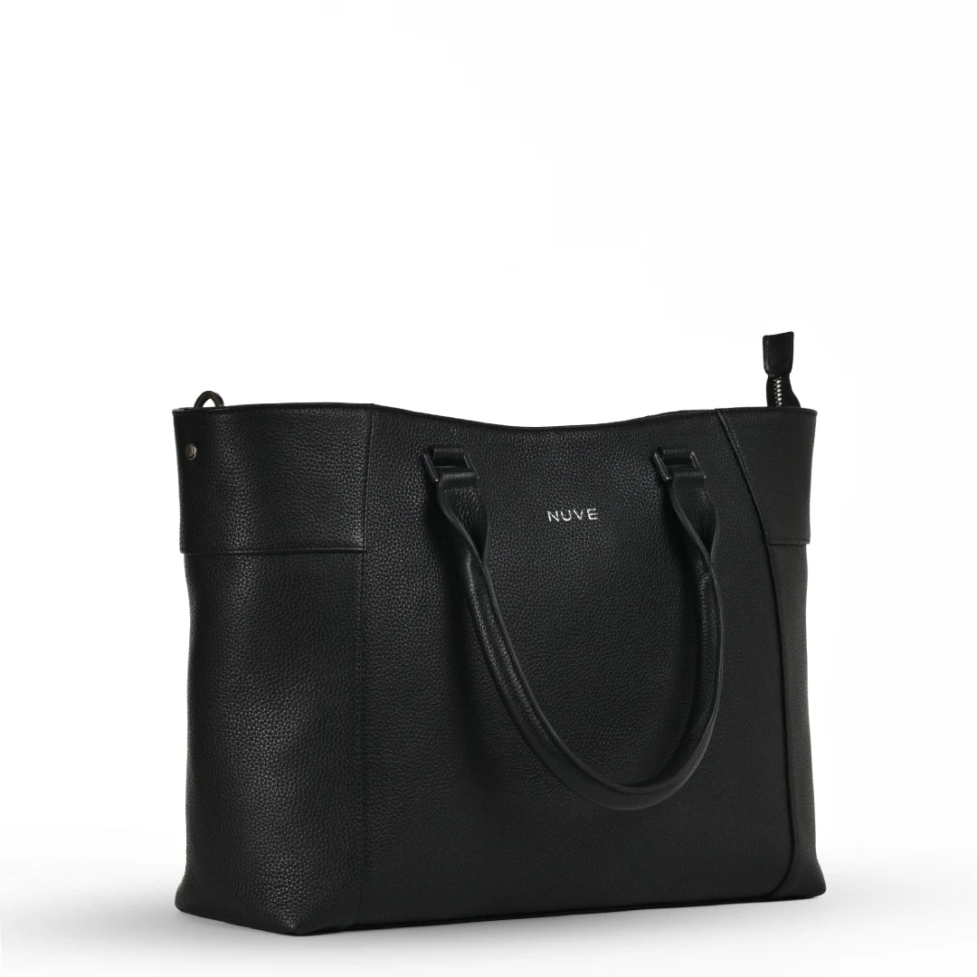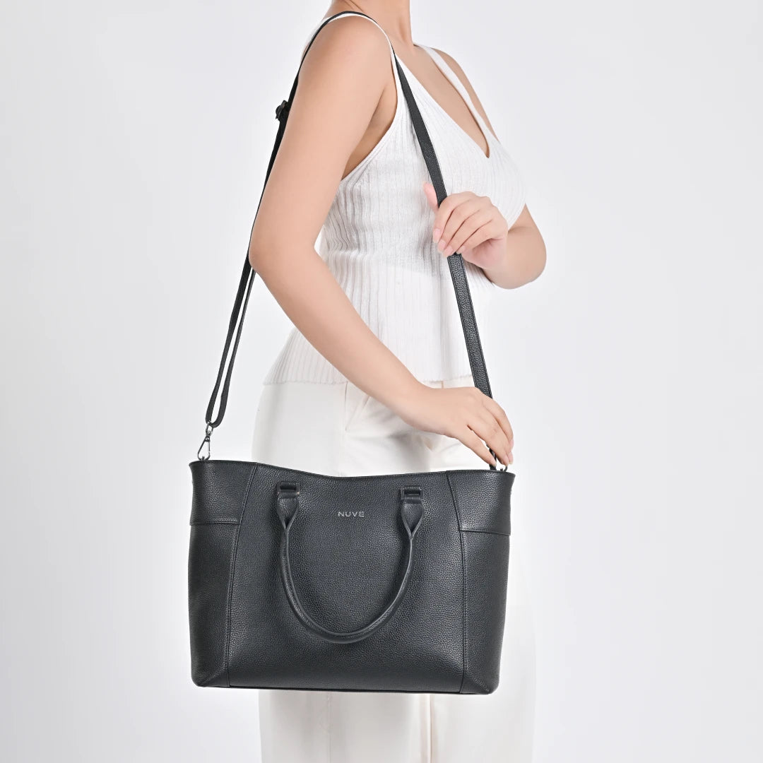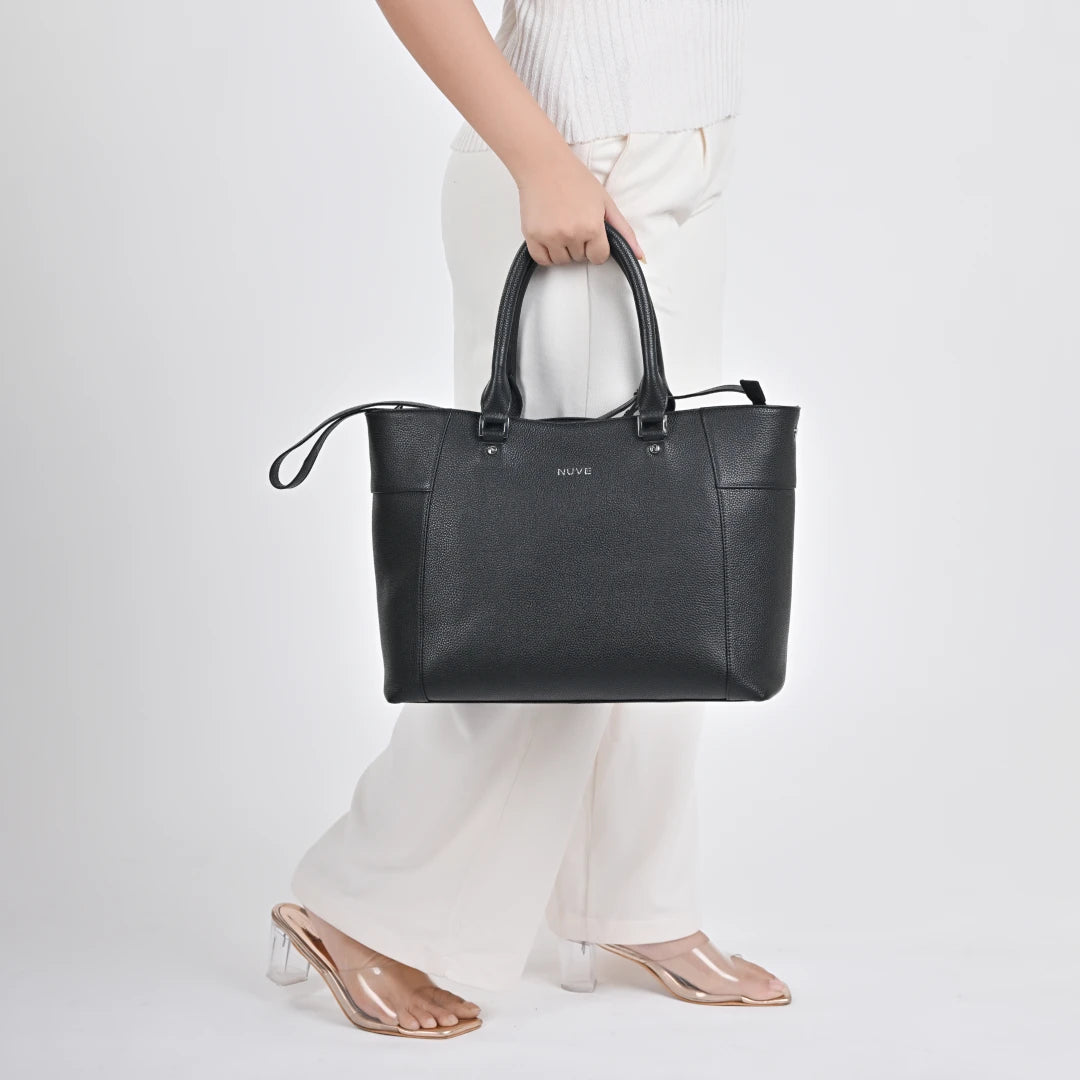 NUVE Genuine Leather Tote Bag for Female - Structured Laptop Carrier - Black